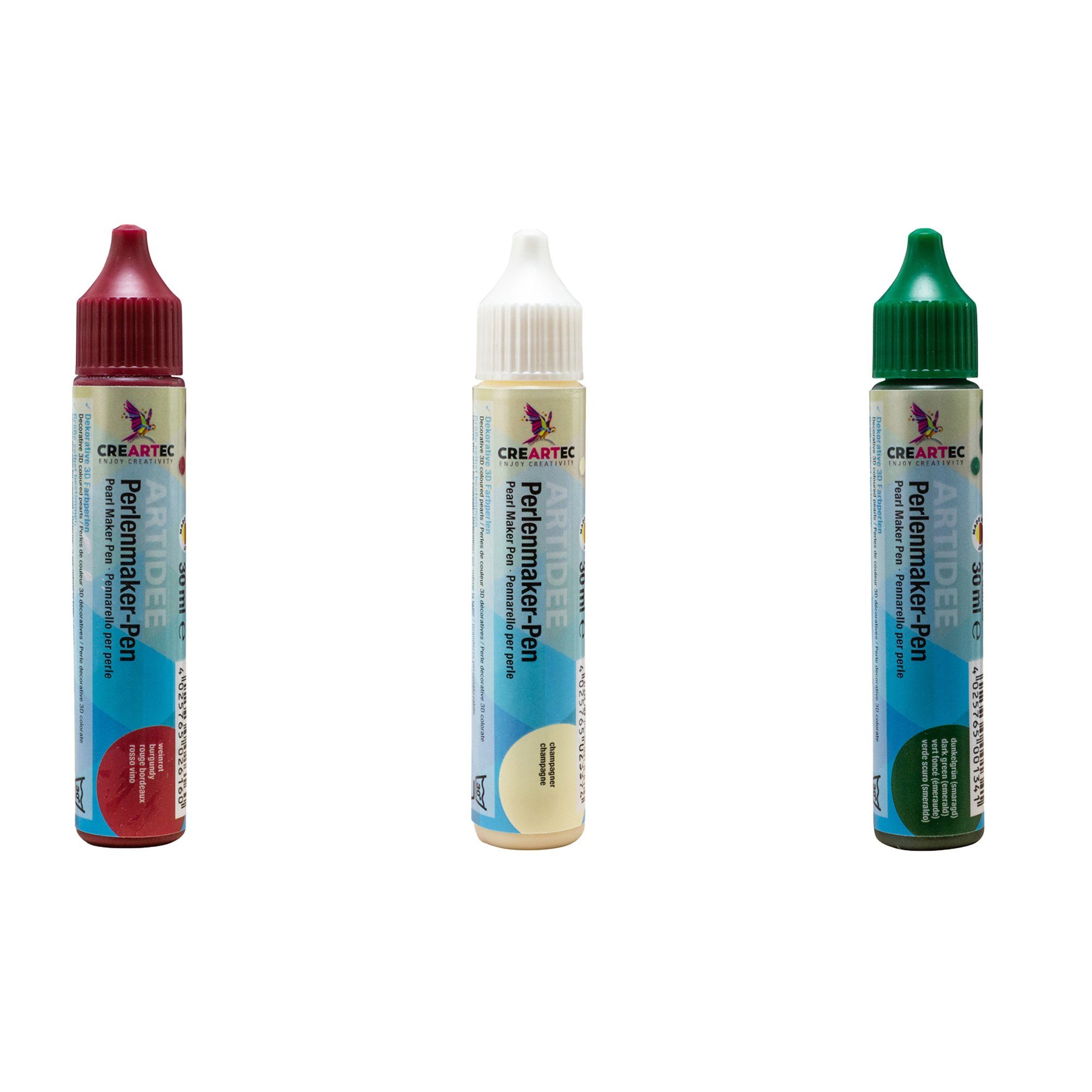 Mit farbenfrohen Perlenmakern lassen sich Textilien, Holz, Pappe, Leder, Glas und Keramik wundervoll in eigenem Design gestalten. Mit bis zu 800 Perlen pro Flasche (je 30ml) und der schönen Farbauswahl können sie ihrer Kreativität freien Lauf lassen.