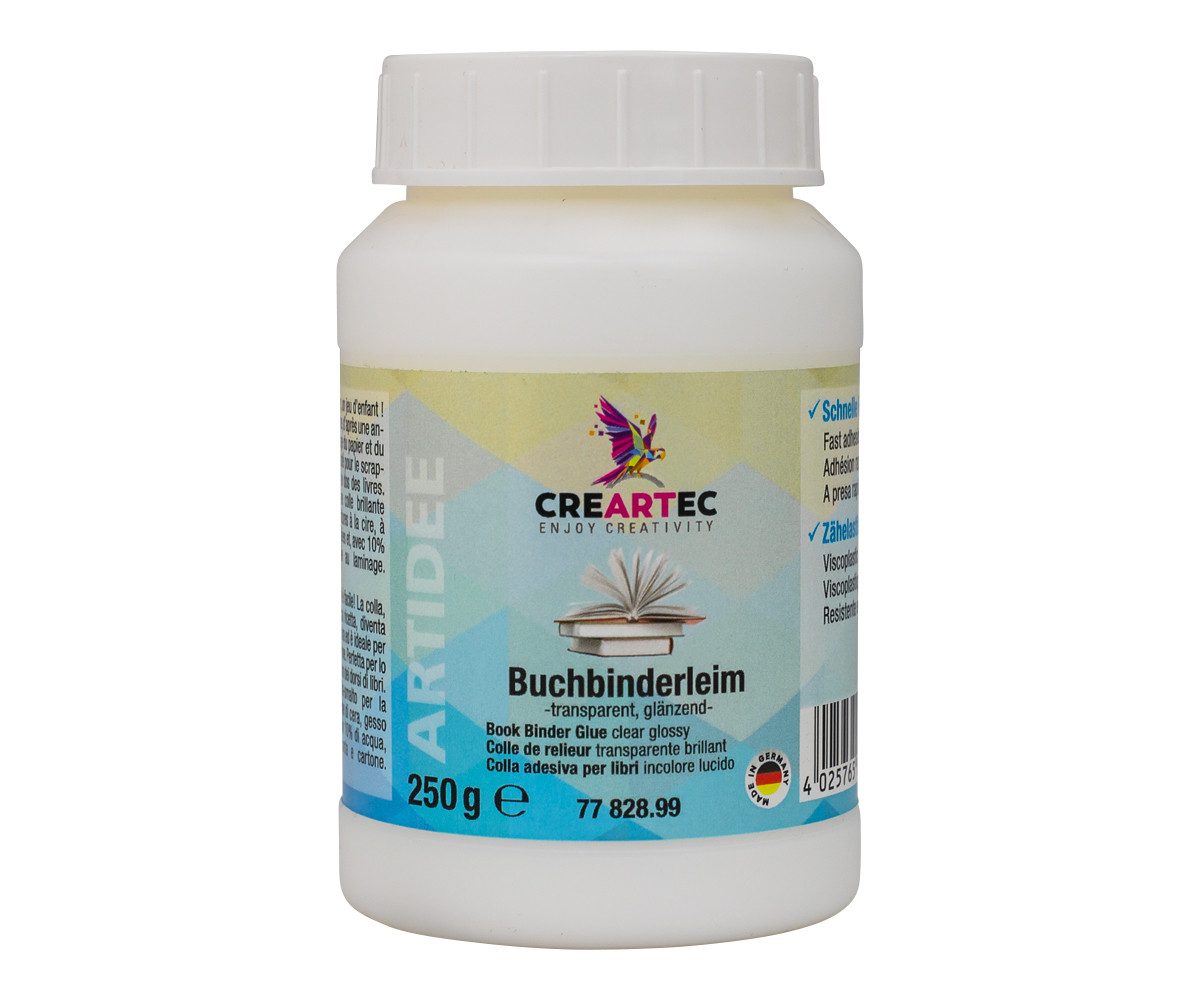 Original Buchbinderleim – hergestellt nach einem alten Hausrezept. Der Leim wird für hochwertige Papierklebearbeiten (Scrapbooking, Lumbecken, als Fotokleber, außerdem zum Verkleben von Buchrücken verwendet. Damit können selbstverständlich auch alle üblichen Klebearbeiten gemacht werden, bei denen Papier mit Papier, Pappe, Kork, Holz, Textilien und Styropor verklebt wird.