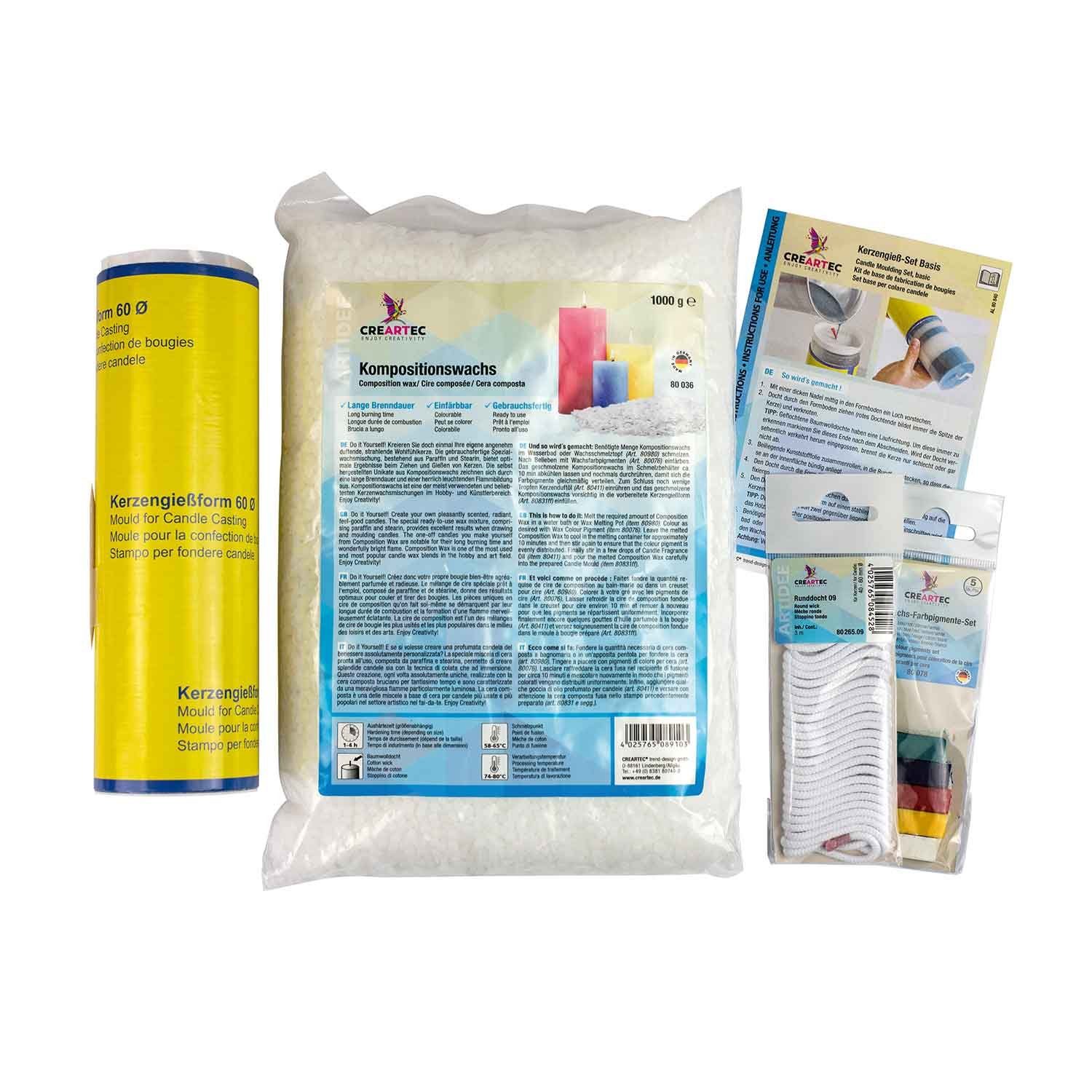 - Wachsfarbpigment-Set (weiß/ zitrone/ rot/ blau/ türkis) (auch als Zubehör erhältlich, Referenz 364485)