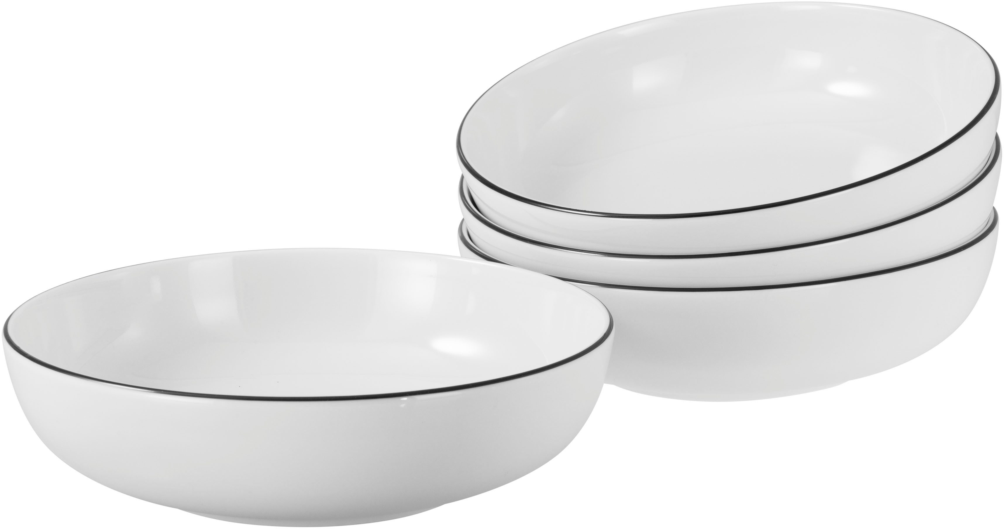 HANDWERKLICHE BOWLS: 4 Designerstücke warten darauf, deinen Tisch zu schmücken. Das Set beinhaltet 4 Pokebowls (Ø 21 cm). DESIGNKLASSIKER: Moderne Coupeform mit eleganter schwarzer Linie auf strahlend weißem Porzellan. DESIGN IM TREND: Bowls in einer modernen Form, bestens geeignet für den "daily use". Das Geschirr begleitet Dich durch den ganzen Tag. Es ist außergewöhnlich lang haltbar und selbstverständlich auch spülmaschinen- und mikrowellengeeignet. MARKENQUALITÄT: Unser Geschirr wird in Deutschland konzipiert und in ausgewählten Premiumfabriken produziert, um Dir die Qualität zu liefern, die Du Dir für Dein Zuhause wünschst. Außerdem ist für Bruchersatz in der Regel zeitnah und jahrelang gesorgt!