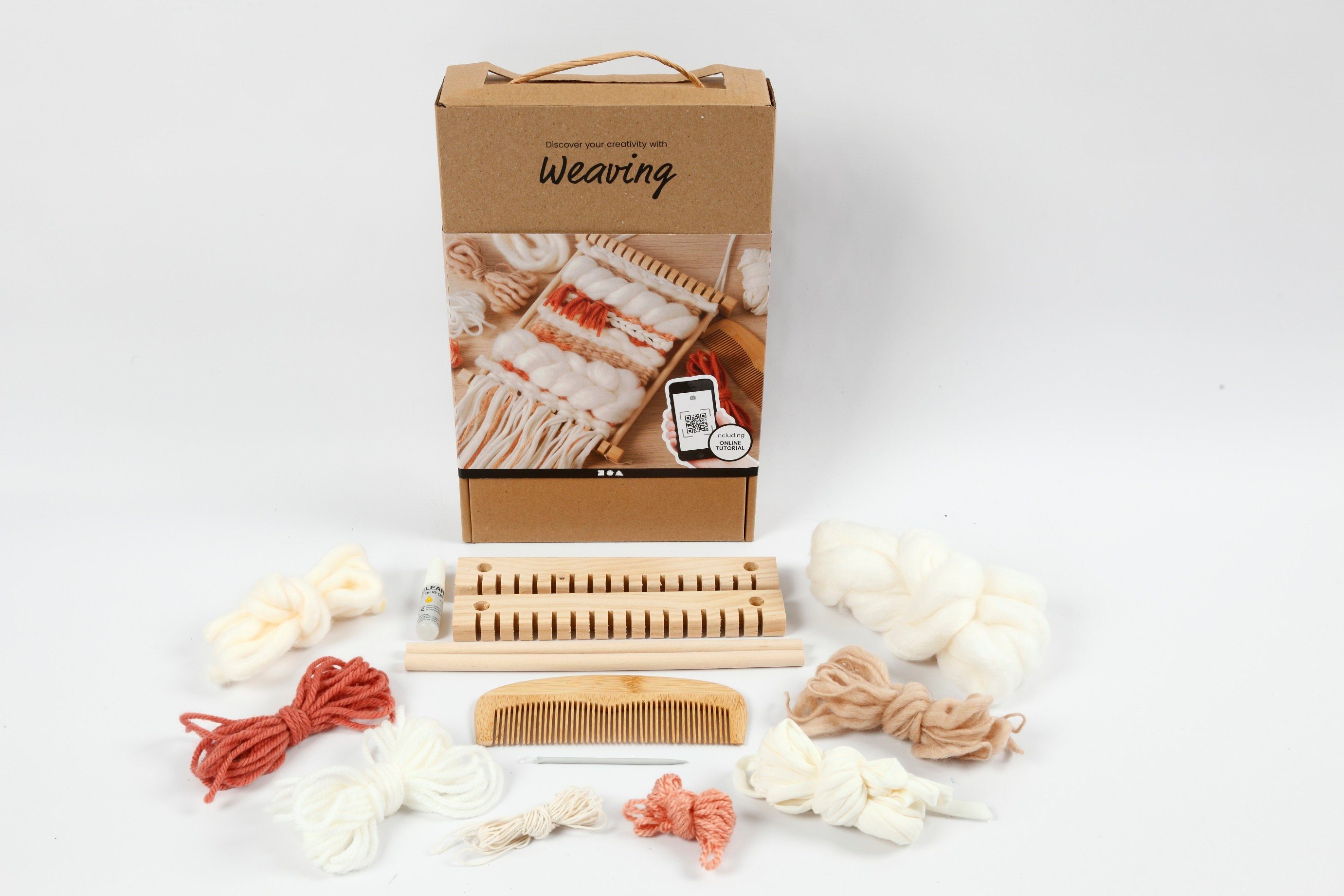 Mit dabei ist ein Webrahmen, welcher zunächst zusammengesetzt werden muss. Außerdem erhalten Sie Kleber, Kettfaden, Kamm, Nadel und Garn in verschiedenen Farben und Qualitäten. Insgesamt rund 30m Material um Ihre Wünsche in Realität umzusetzen. Da ist für jeden etwas dabei!