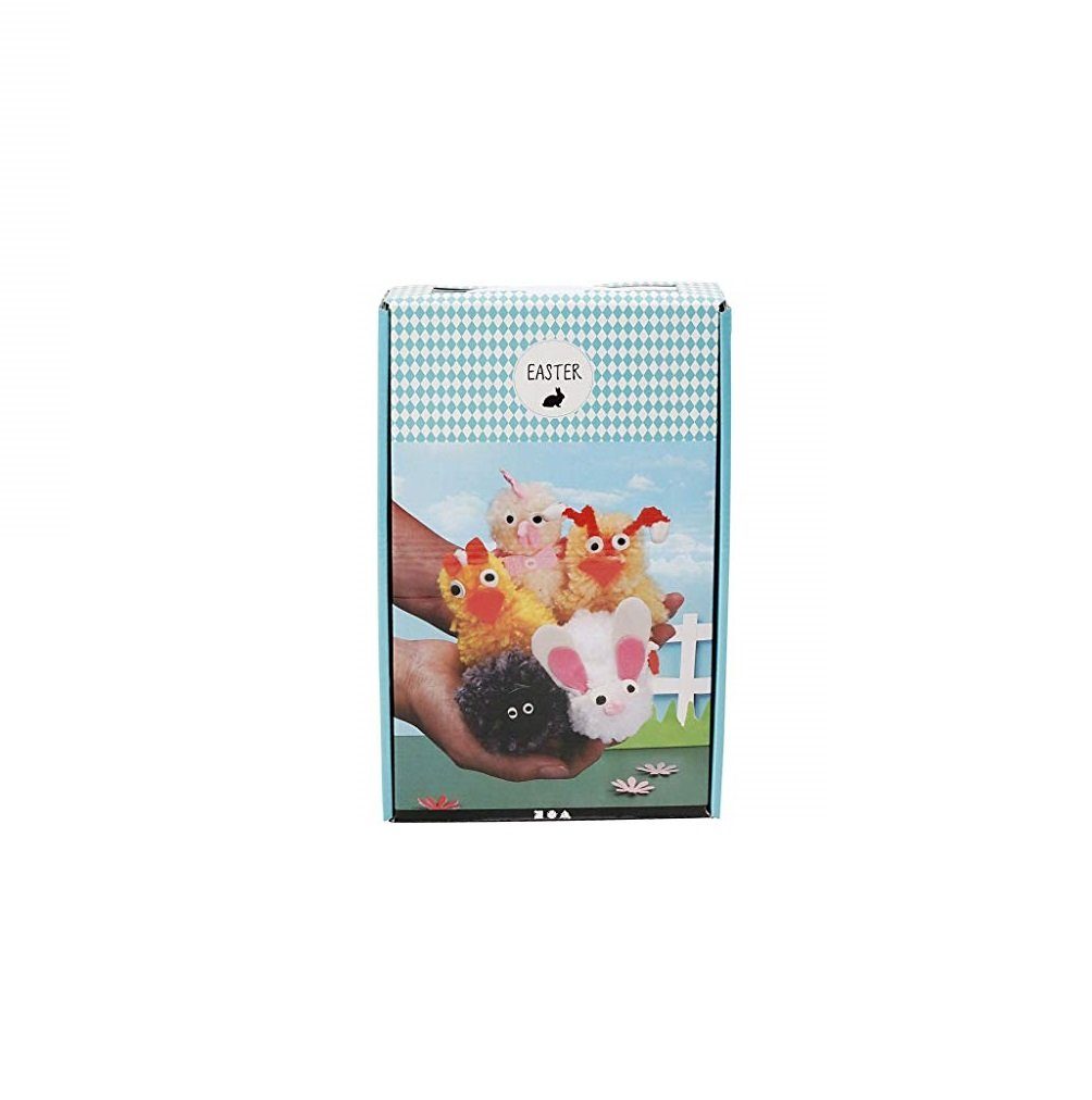 Mit dem Ostertiere-Set können Sie fünf bezaubernde Osterfiguren kreieren, die jedem Raum eine fröhliche, frühlingshafte Note verleihen. Das Set enthält alles, was Sie benötigen, um aus Woll-Pompons, Chenille, Filz und Silk Clay niedliche Figuren wie ein süßes Küken, ein flauschiges Lamm oder ein dekoratives Osterei zu gestalten.