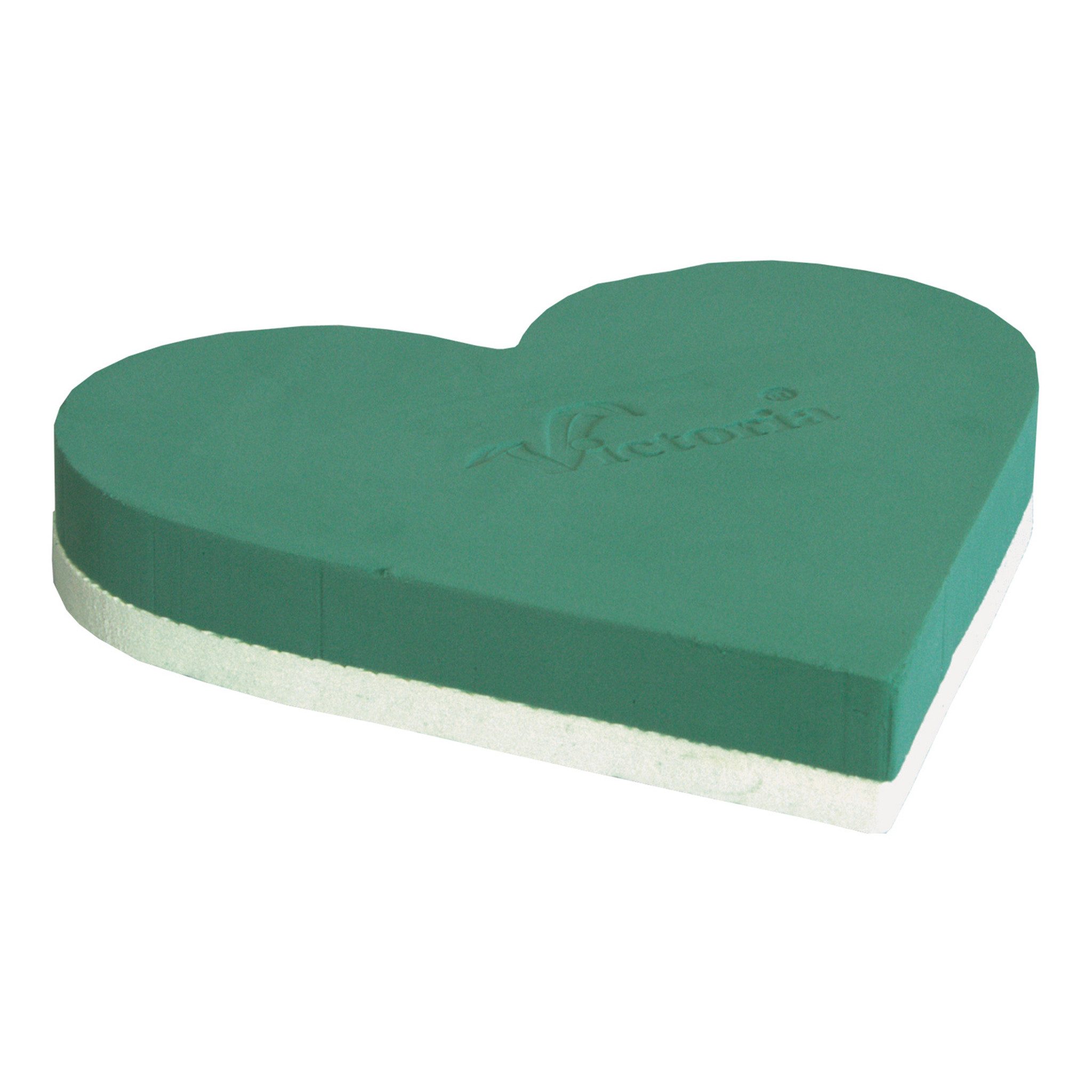 PRODUKT: Herz Steckmasse für Frischblumen nass - in EU hergestellt / INHALT: 1 Stück / GRÖSSE (LxBxH): ca. 30 x 26 x 6 cm / MATERIAL: Kunststoff - Schaumstoff, Hartschaum Unterlage