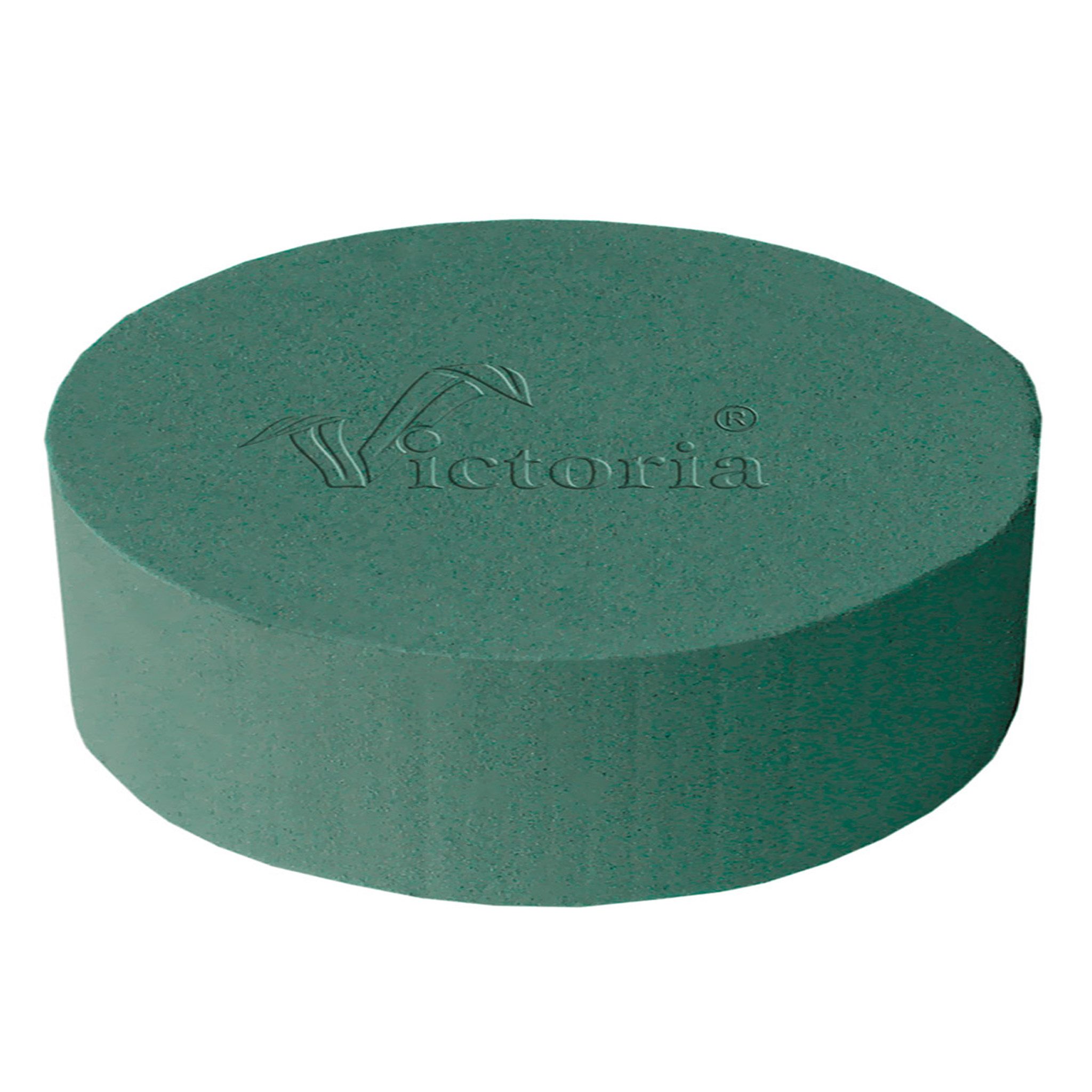 PRODUKT: Runde Steckmasse für Frischblumen nass - in EU hergestellt / INHALT: 1 Stück / GRÖSSE (DxH): ca. 22 x 7 cm / MATERIAL: Kunststoff - Schaumstoff / FARBE: grün