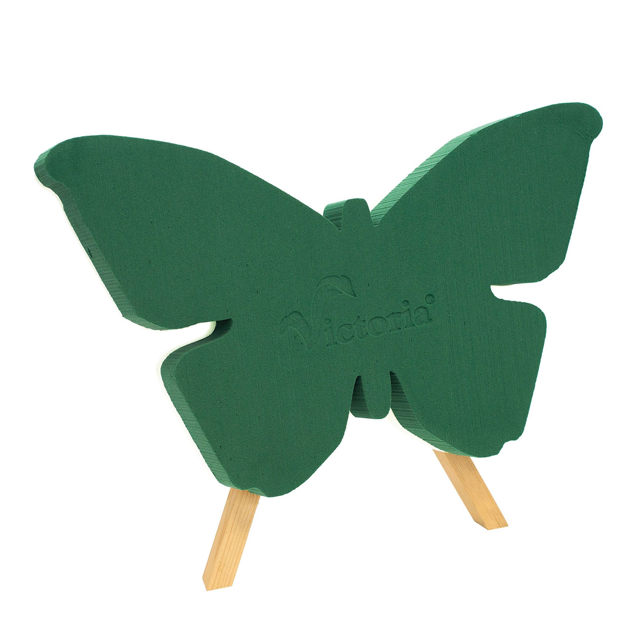 PRODUKT: Schmetterling Steckmasse für Frischblumen nass - in EU hergestellt / INHALT: 1 Stück / GRÖSSE SCHMETTERLING (BxHxT): ca. 50 x 20 x 6 cm / HÖHE INKL. STÄNDER: ca. 37 cm /