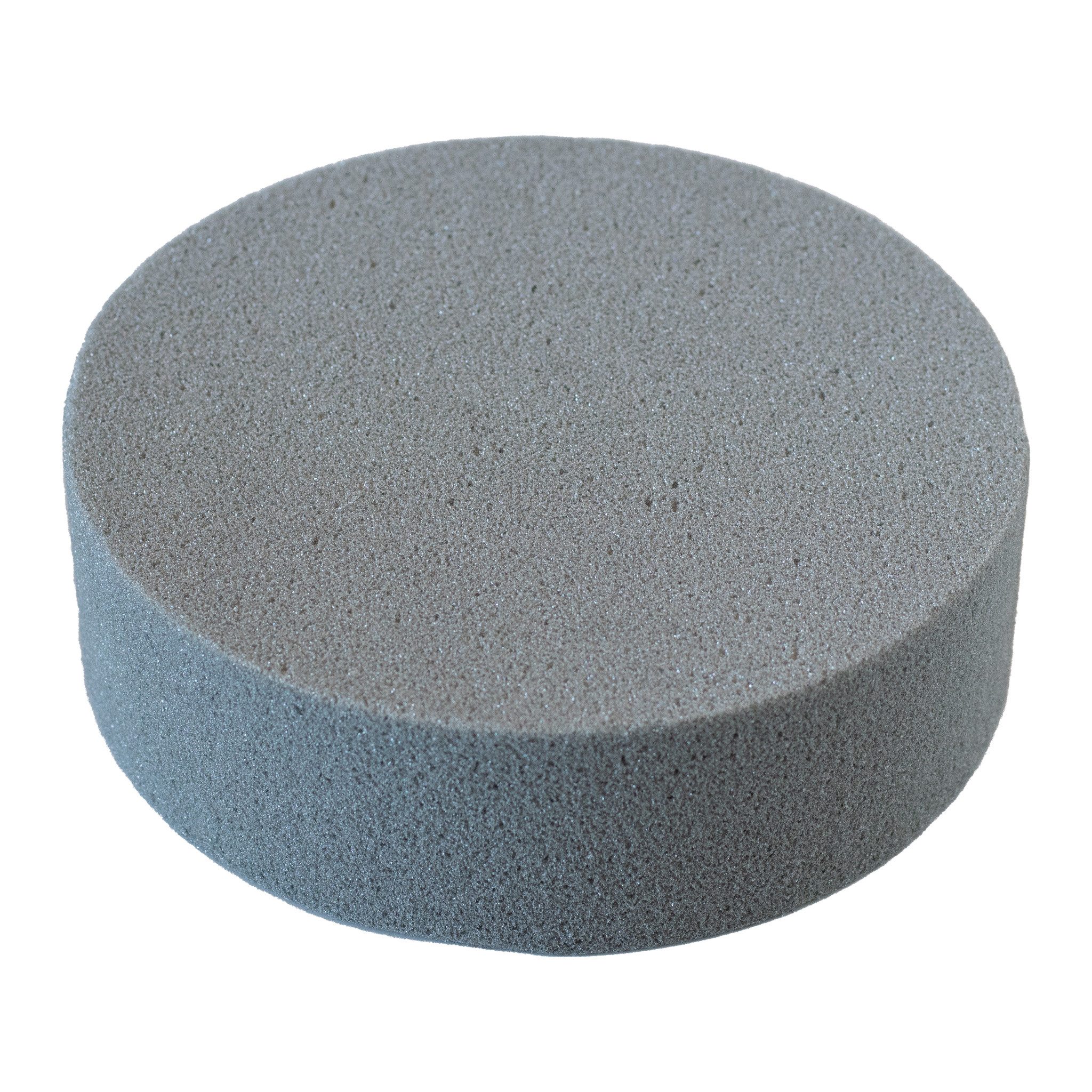 PRODUKT: Runde Steckmasse für Seidenblumen und Trockengräser / INHALT: 1 Stück / GRÖSSE (DxH): ca. 22 x 7 cm / MATERIAL: Kunststoff - Schaumstoff / FARBE: grau