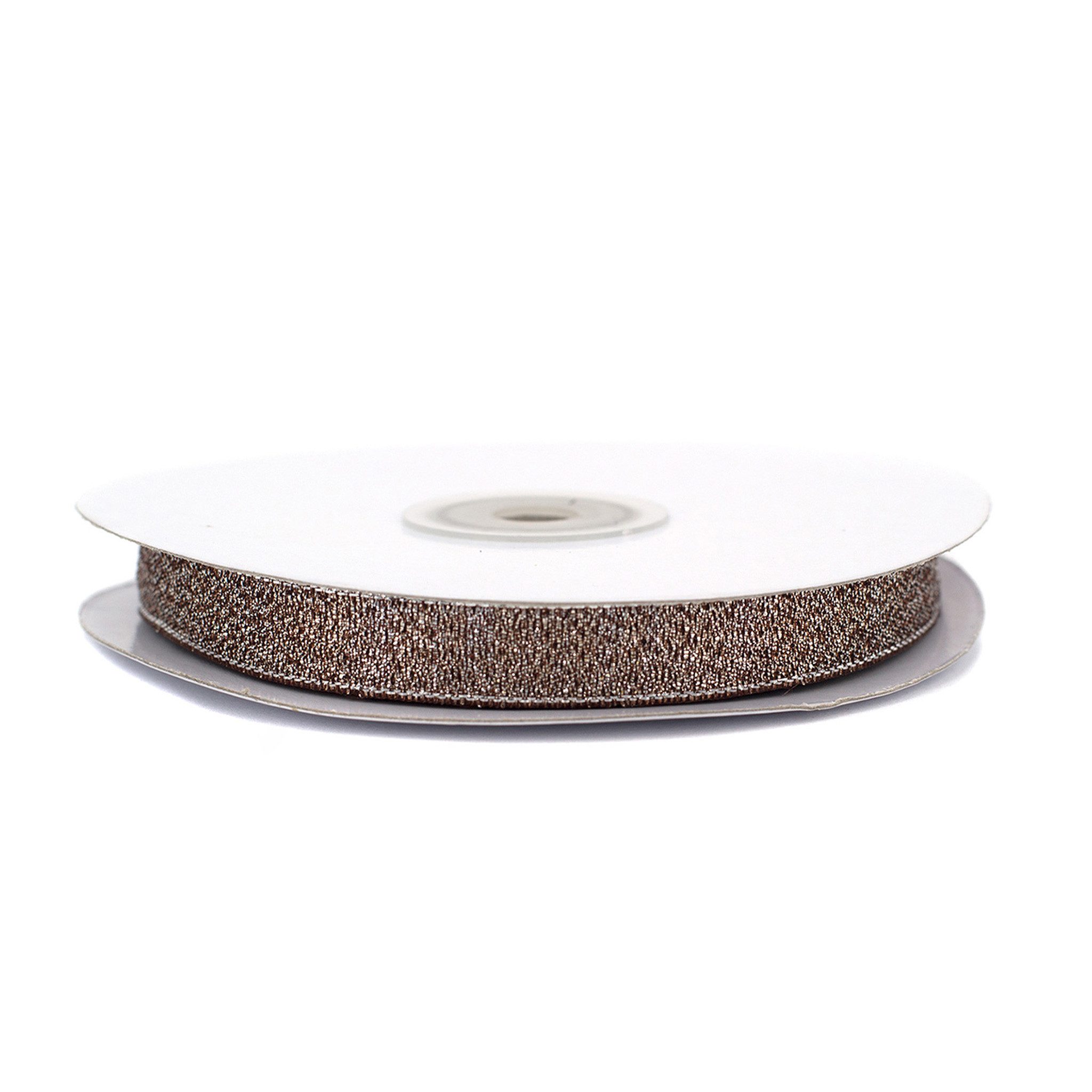 PRODUKT: Glitzerband / BREITE: ca. 1,2 cm / INHALT: 32 m auf Rolle / MATERIAL: Textil, Polyester mit Lurex (dünnes metallisches Garn) / FARBE: braun - silber