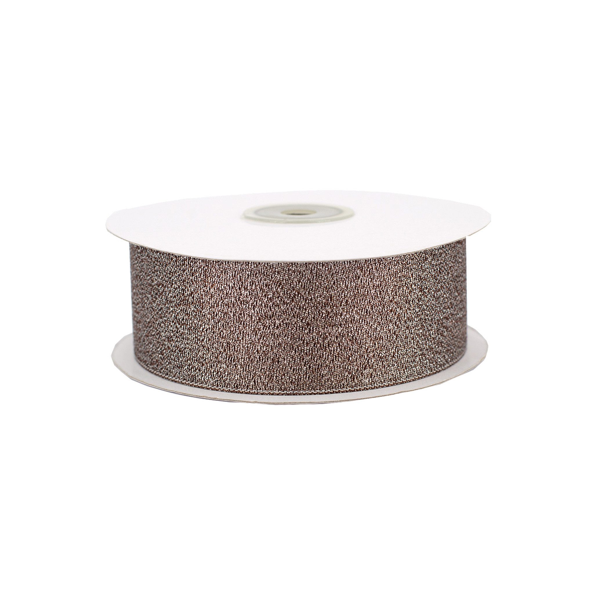 PRODUKT: Glitzerband / BREITE: ca. 3,8 cm / INHALT: 32 m auf Rolle / MATERIAL: Textil, Polyester mit Lurex (dünnes metallisches Garn) / FARBE: braun - silber