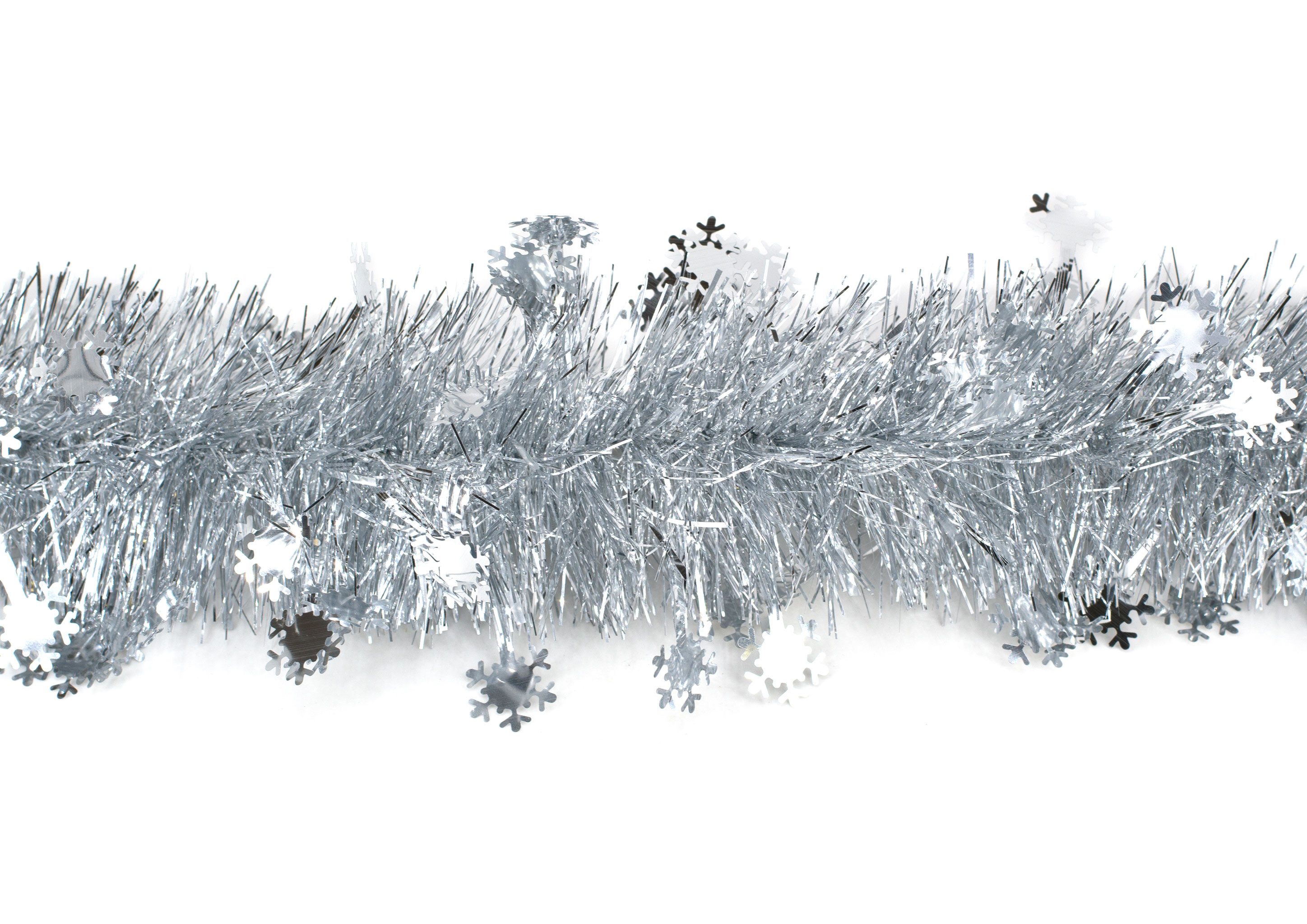 DICHTE CHRISTBAUMGIRLANDE: Glänzende, dichte Lametta-Girlande mit Schneeflocken für ein festliches Ambiente. Ideal als Weihnachtsbaumschmuck oder zur Dekoration von Türen und
