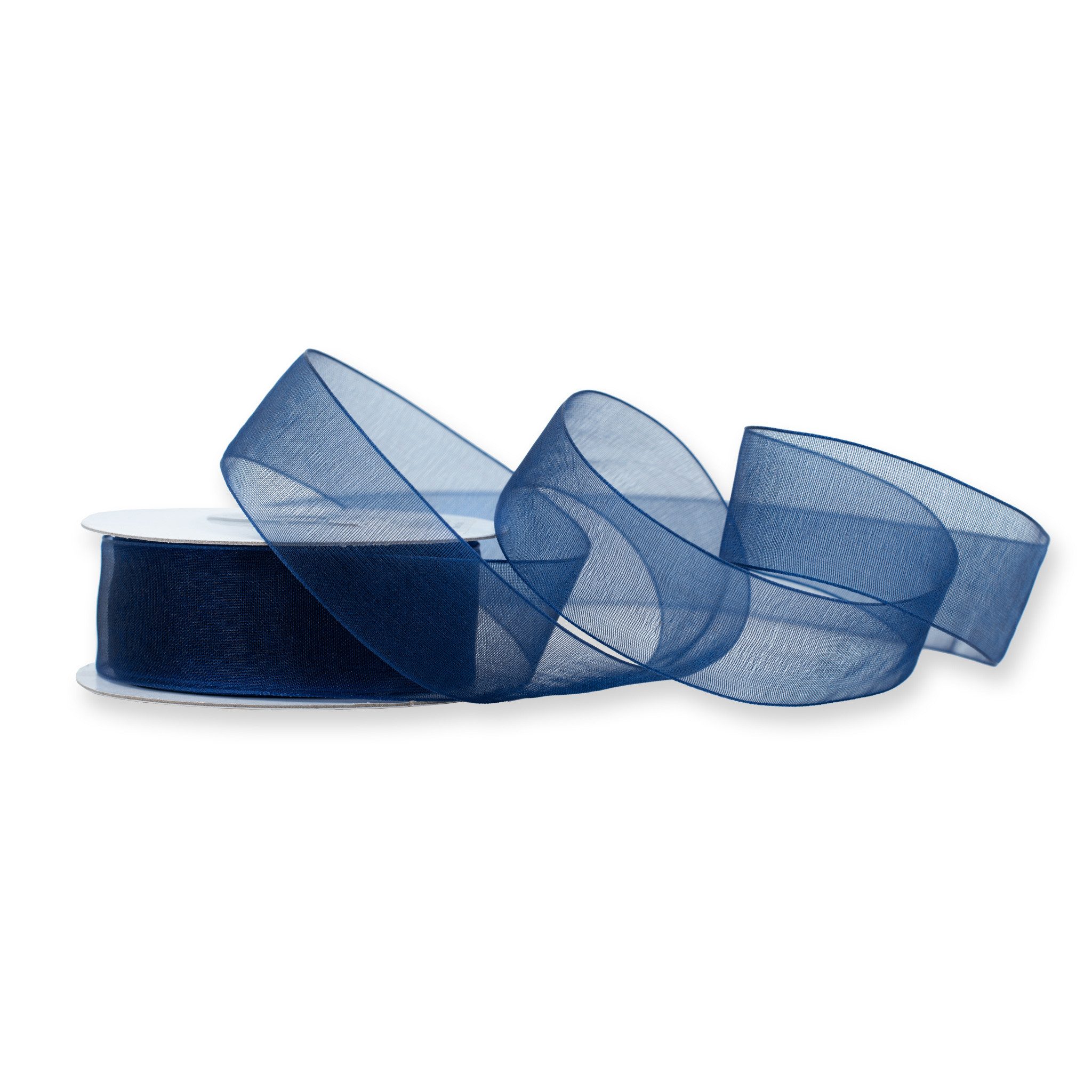 Organzaband / Chiffonband / Schleifenband / Geschenkband 25mm x 25m auf Rolle Material: Textil, Chiffon / Organza - Stoff, 100% Nylon - Breite: 25 mm bzw. 2,5 cm - Inhalt: 25 m auf Rolle - Farbton: navyblau - navy blue - nachtblau - marineblau - Pflegehinweise: waschbar bei 30 Grad, bügelfähig auf Stufe II, nicht bleichen - mit Webkante, ohne Drahteinlage - transparent, von beiden Seiten schimmernd - weich, farbecht, lässt sich gut falten, kleben, tackern, binden, nähen - hervorragend zum Basteln, Dekorieren oder zum Nähen von Kleidung und qualitativen Kostümen Unser dekoratives Organzaband eignet sich hervorragend zur Verzierung von Kleidung und beliebigem Textil. Auch zum Basteln wird ein blaues Schleifenband gerne verwendet. Ob Sie nun eine Haarschleife anfertigen, den Richtkranz oder Maibaum schmücken oder Brautstrauß binden möchten - mit diesem Stoffband gestalten Sie stilvolle Accessoires und Dekorationen. Aus dem Chiffonband lassen sich auch schöne Schleifen kreieren, um Geschenke, den Weihnachtsbaum, die Kirchenbank oder das Hochzeitsauto zu dekorieren. Als Ergänzung Ihrer Osterdeko, Weihnachtsdeko, Geburtstagsdeko oder Hochzeitsdeko setzt das Dekoband nicht nur zauberhafte Akzente, sondern unterstützt durch seine Farbe auch das Farbkonzept der Veranstaltung. Ganz klassisch als Geschenkband angewendet, erfreut das liebevoll verpackte Geschenk jeden Beschenkten. Anlässe & Saison: Winterhochzeit, Hochzeit im Winter, Ramadan, Meeresparty, Kindergeburtstag, Geburtstag, Vatertag, Männertag, Herrentag, Trauer, Beerdigung - Passend zum Thema & Mottoparty: Party mit Motto 70er, 80er Jahre, Disco, Bad Taste, Kosmos, Weltraum, Universum, Meereswelt, Maritim, Eisprinzessin, Eiskönigin, Frozen / Raureif - Stil & Aufmachung: uni & einfarbig, durchsichtig, beidseitig glänzend - Farbgruppe: blau - dunkelblau Aufgrund unterschiedlicher Monitoreinstellungen können Farbabweichungen vom Produktfoto auftreten