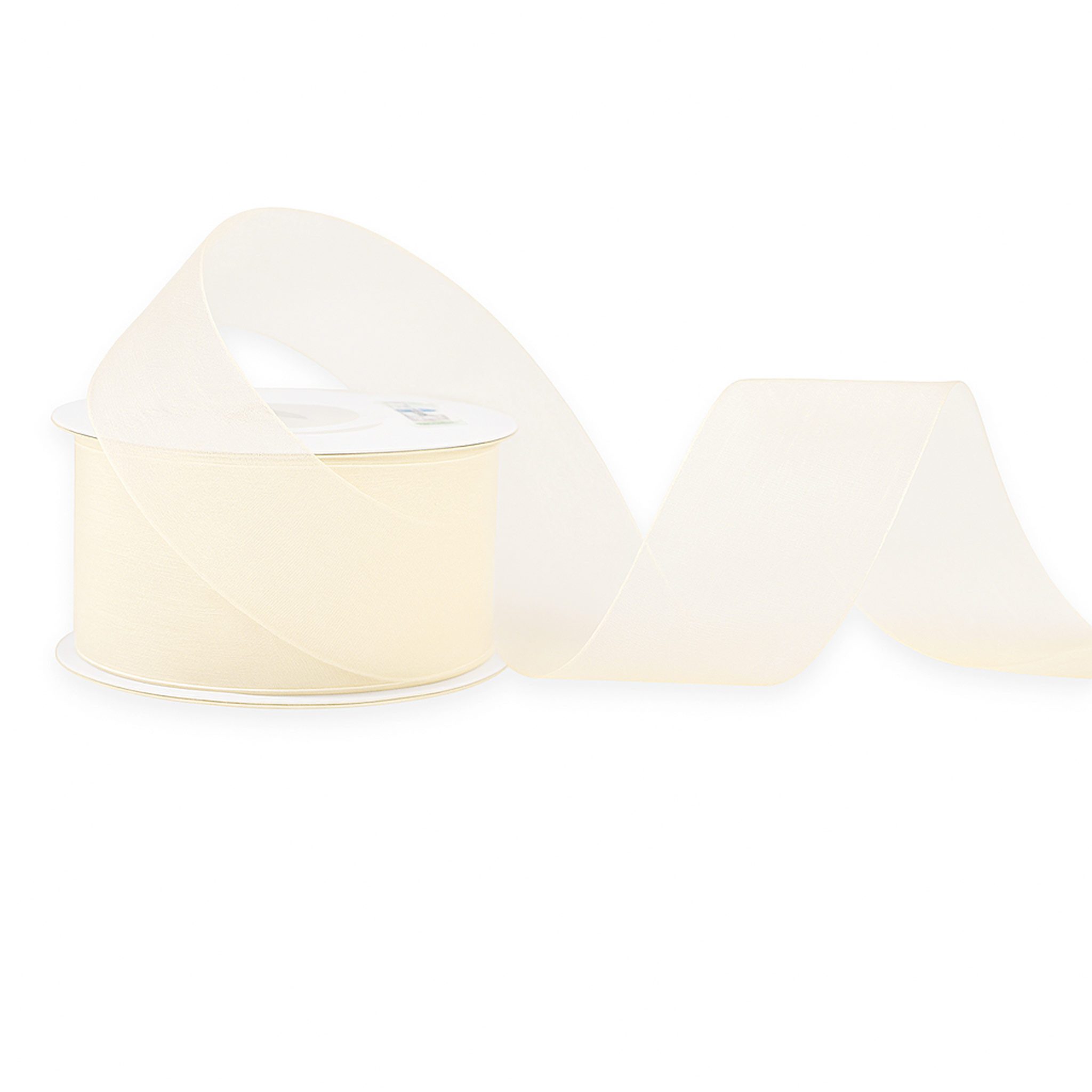 Organzaband / Chiffonband / Schleifenband / Geschenkband 38mm x 25m auf Rolle Material: Textil, Chiffon / Organza - Stoff, 100% Nylon - Breite: 25 mm bzw. 2,5 cm - Inhalt: 25 m auf Rolle - Farbton: ivory - elfenbein - cremeweiß - wollweiß - Pflegehinweise: waschbar bei 30 Grad, bügelfähig auf Stufe II, nicht bleichen - mit Webkante, ohne Drahteinlage - transparent, von beiden Seiten schimmernd - weich, farbecht, lässt sich gut falten, kleben, tackern, binden, nähen - hervorragend zum Basteln, Dekorieren oder zum Nähen von Kleidung und qualitativen Kostümen Unser dekoratives Organzaband eignet sich hervorragend zur Verzierung von Kleidung und beliebigem Textil. Auch zum Basteln wird ein Schleifenband gerne verwendet. Ob Sie nun eine Haarschleife anfertigen, den Richtkranz oder Maibaum schmücken oder Brautstrauß binden möchten - mit diesem Stoffband gestalten Sie stilvolle Accessoires und Dekorationen. Aus dem Chiffonband lassen sich auch große Schleifen kreieren, um Geschenke, den Weihnachtsbaum, die Kirchenbank oder das Hochzeitsauto zu dekorieren. Als Ergänzung Ihrer Osterdeko, Weihnachtsdeko, Geburtstagsdeko oder Hochzeitsdeko setzt das Dekoband nicht nur zauberhafte Akzente, sondern unterstützt durch seine Farbe auch das Farbkonzept der Veranstaltung. Ganz klassisch als Geschenkband angewendet, erfreut das liebevoll verpackte Geschenk jeden Beschenkten. Anlässe & Saison: Verlobung, JGA, Hochzeit, Baby Shower, Babyparty neutral, zur Geburt, Taufe, Kommunion, Konfirmation, Firmung, Kindergeburtstag, Geburtstag, Geburtstagsparty, Ostern - Passend zum Thema & Mottoparty: Party mit Motto 20er, 60er Jahre, Great Gatsby, Hippie, Two Groovy, Schwan, Eisbär, Narwal, Lama & Alpaka, Einhorn - Stil & Aufmachung: uni & einfarbig, durchsichtig, beidseitig glänzend - Farbgruppe: ecru - creme - pastell - pastellfarben Aufgrund unterschiedlicher Monitoreinstellungen können Farbabweichungen vom Produktfoto auftreten