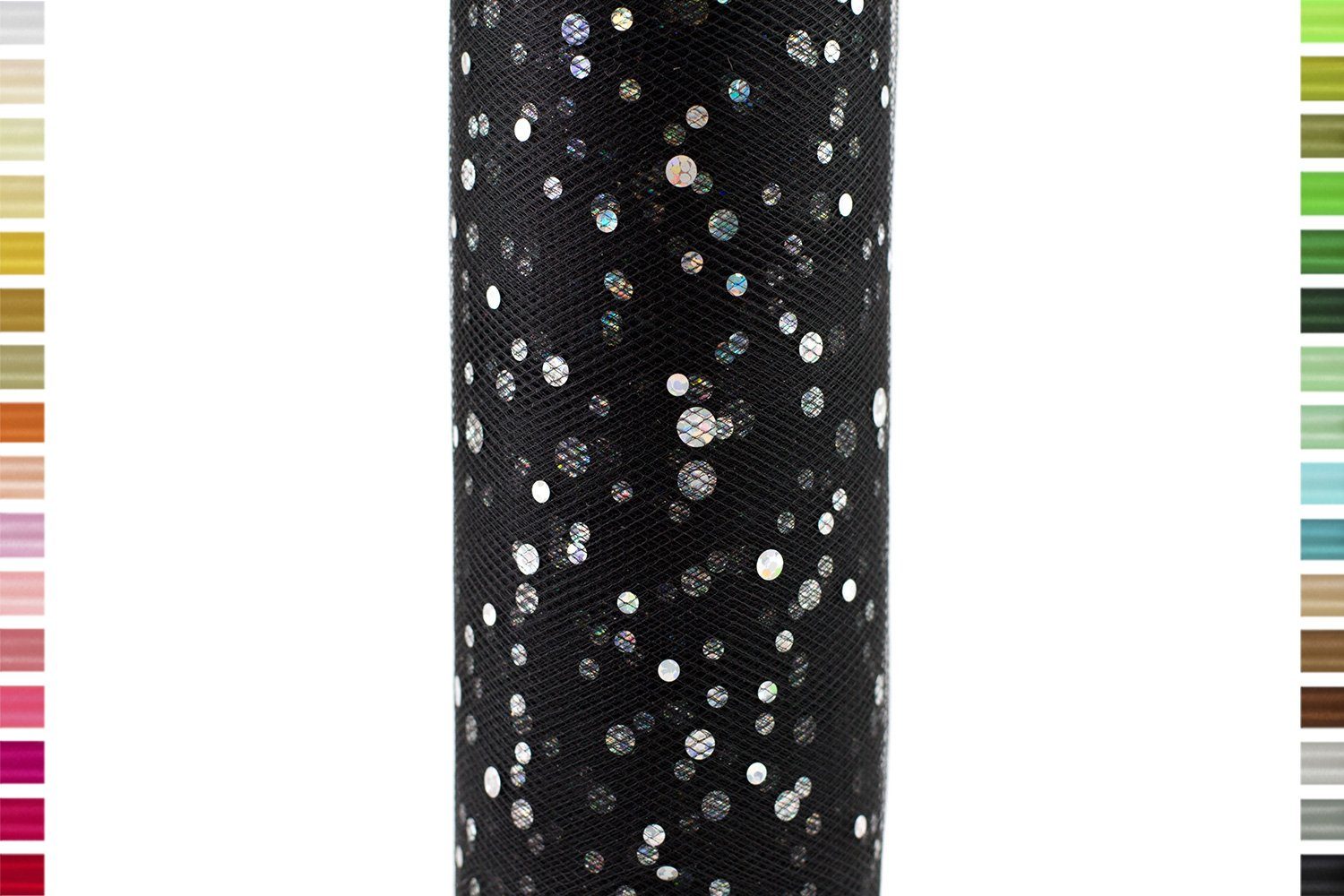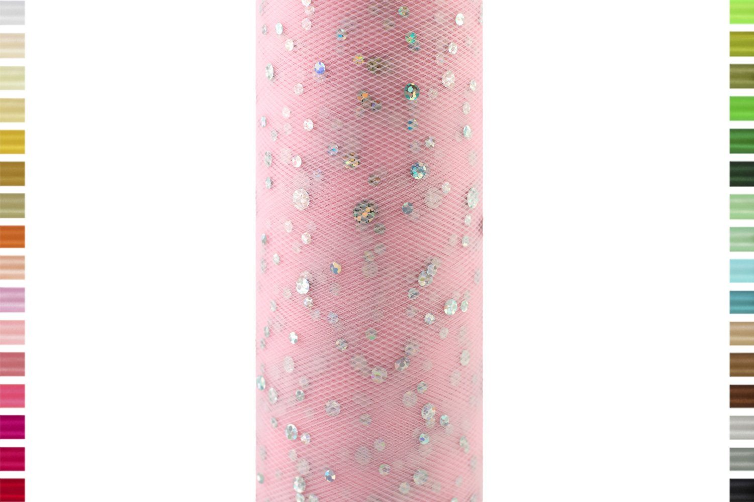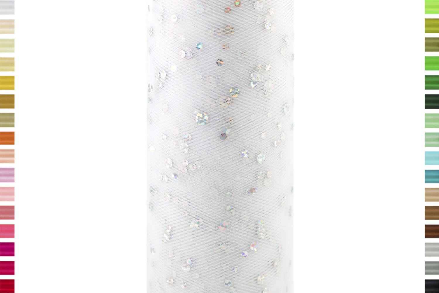 transparent, netzartig, mit glitzernden Pailletten in silber die sich nicht ablösen oder an den Händen haften