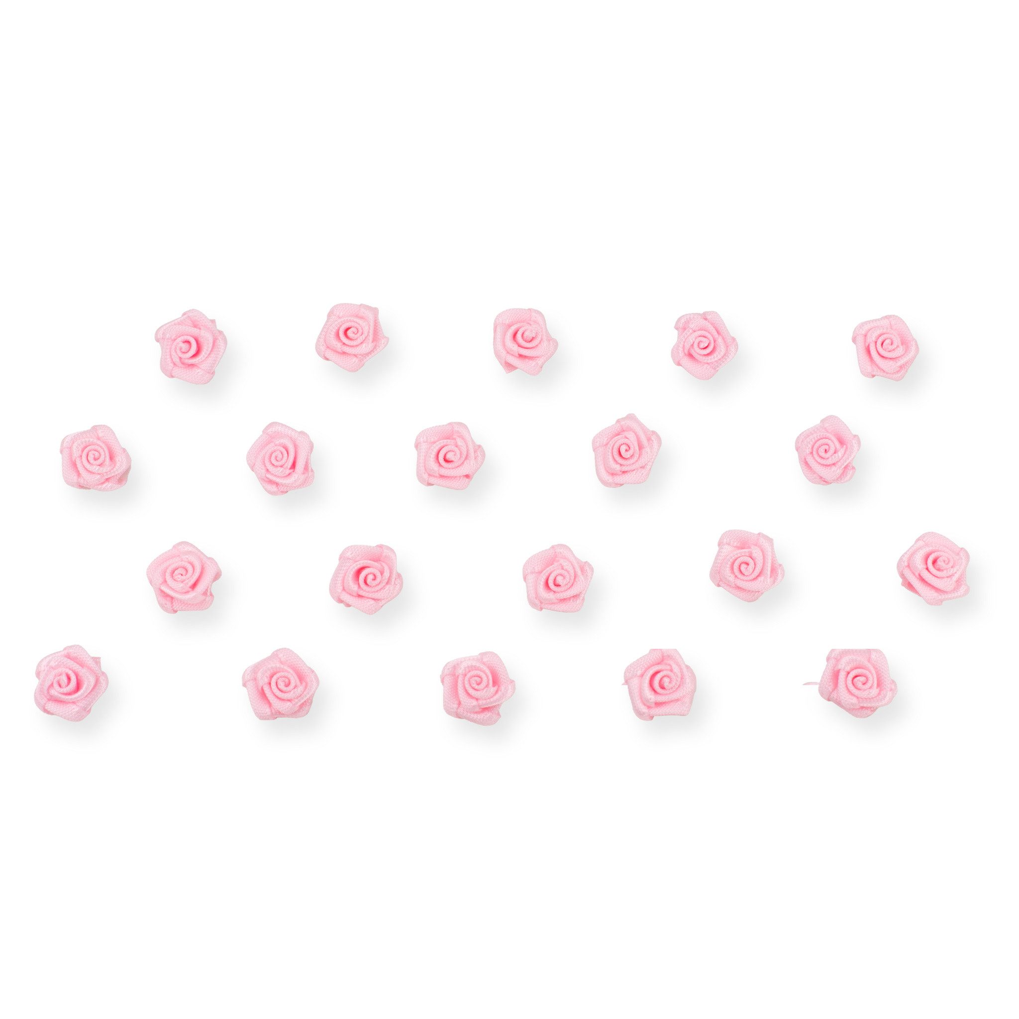 PRODUKT: Satin Rosen 10mm / INHALT: 20 Stück / MATERIAL: 100% Polyester / FARBTON: zartrosa - rosé - puderrosa - blassrosa - pastellrosa / PFLEGE: waschbar bei 40 Grad, nicht