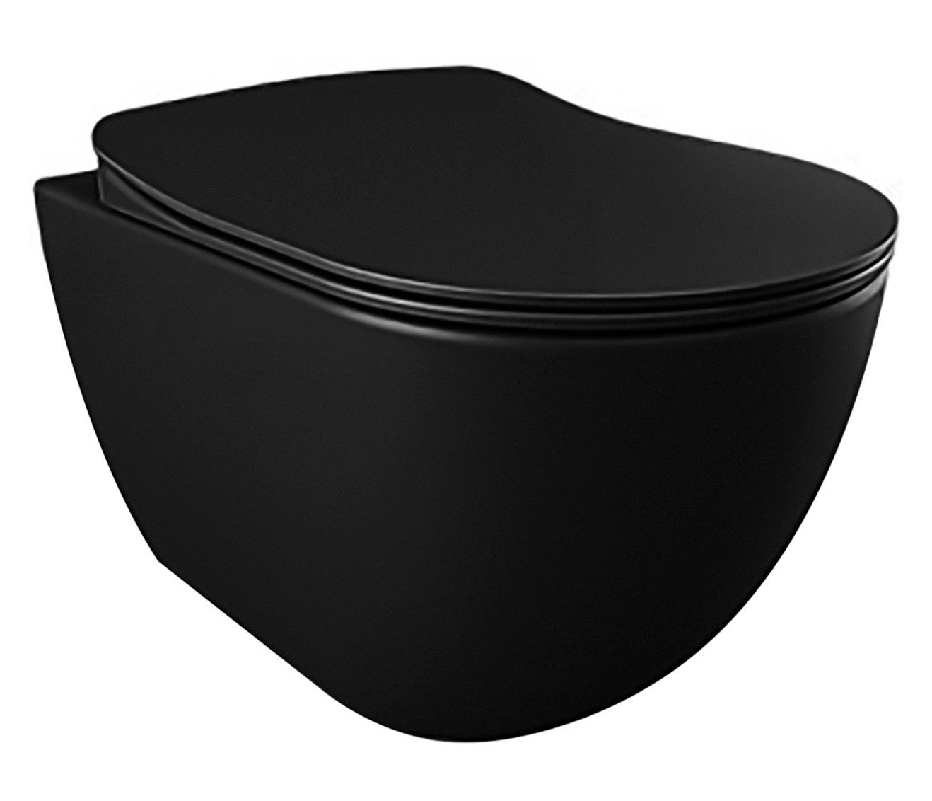 Zum Set gehört auch ein formschöner WC-Sitz aus Duroplast in passendem Mattschwarz. Sanftes Спрятать ohne Knallen garantiert die integrierte Softclose-Funktion. Massive Edelstahlscharniere sorgen für zuverlässigen Halt und langjährige Stabilität.