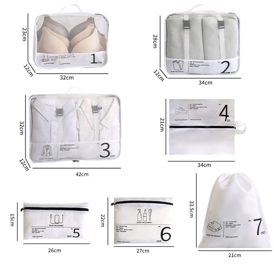 CRELIV® •Dieses Set enthält: Packwürfelx3, Wäschebeutelx1, Zubehörtaschex2, Schuhbeutelx1, in verschiedenen Größen können klassifizierte Kleidung, schmutzige Kleidung, BHs, Unterwäsche, Schuhe, Kosmetika, Handtücher, Toilettenartikel und elektronisches Zubehör aufbewahren. Diese Helfer sorgen dafür, dass Ihr Gepäck während der Reise und am Zielort vollständig organisiert bleibt.