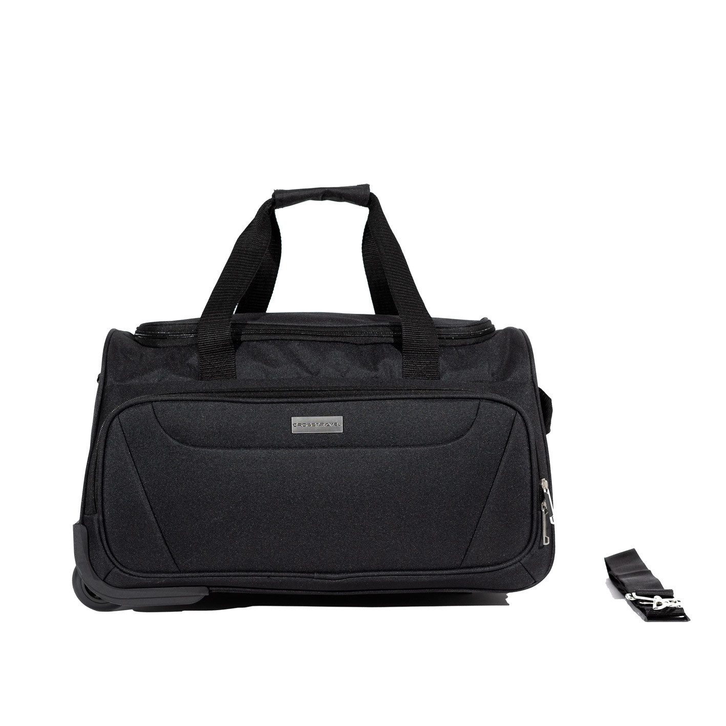 Bequemer Transport: Trolleygestänge mit Druckknopf, leichtgängige Rollen, Schulterriemen und Tragegurt für flexible Nutzung.