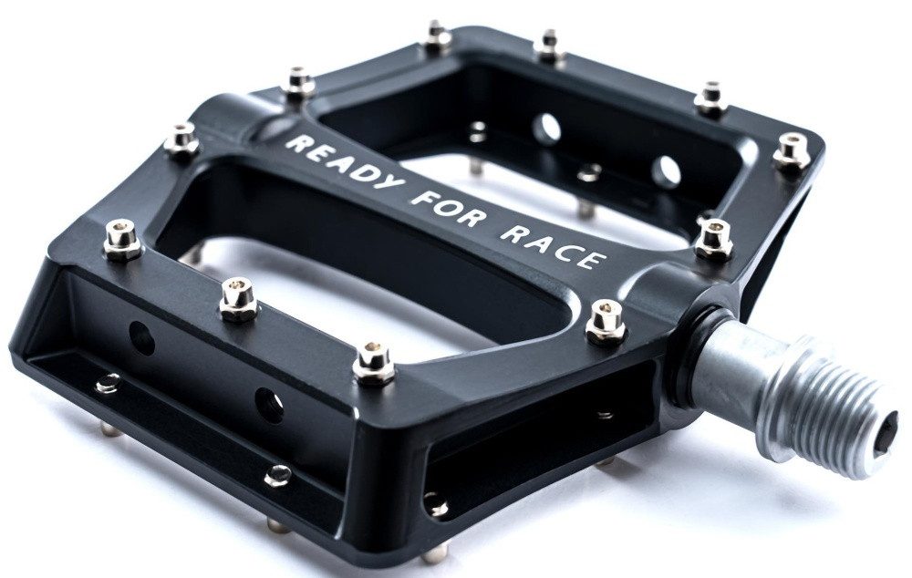 Die leichten Flat-Pedale sind aus Aluminium hergestellt und werden mit einer CrMo-Achse verbaut. Die Pedale werden mit hochwertigen Lagern gelagert. Die Anti-Rutsch-Pins sind austauschbar und bieten besten Halt am Fahrrad.