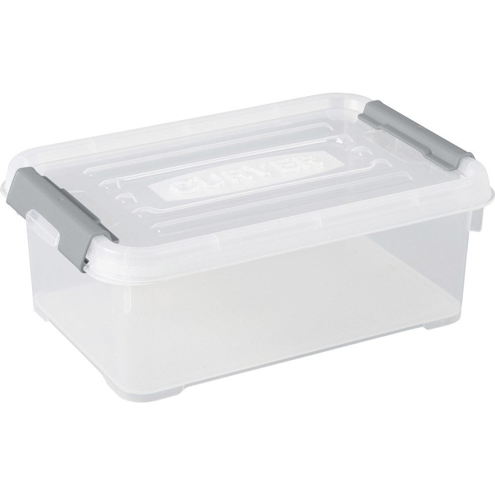 Transparente Allzweckbox mit Deckel und seitlichen Clip-Verschlüssen, nestbar