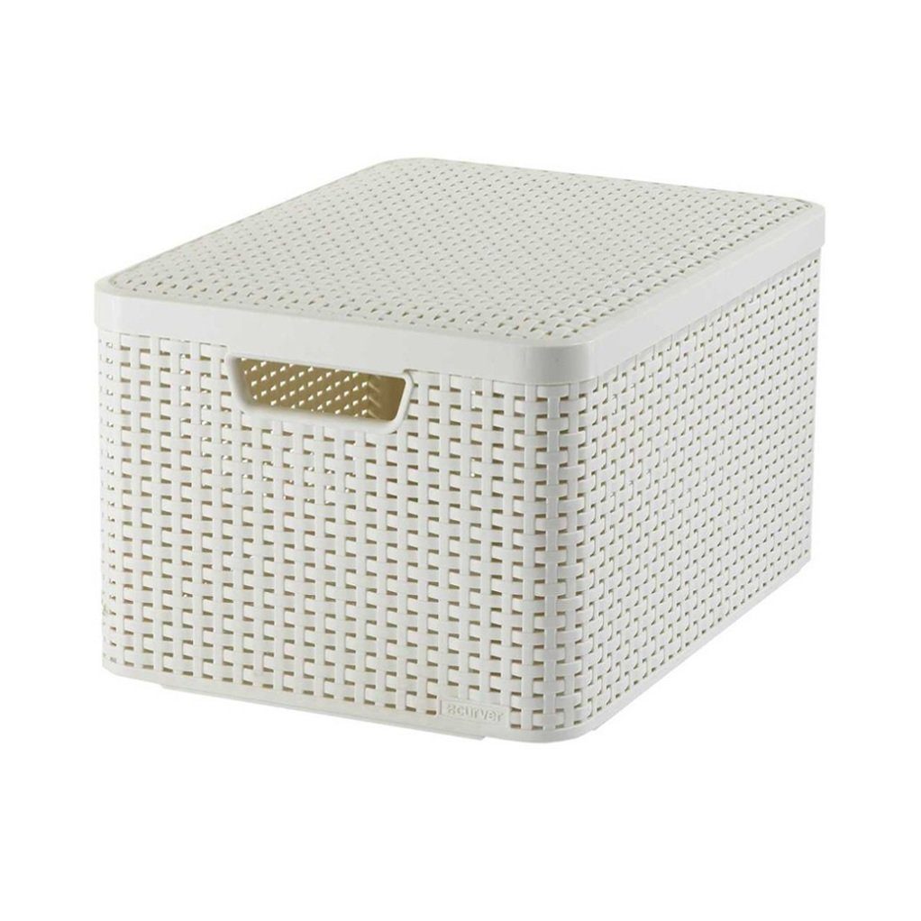 Ein praktischer Aufbewahrungsbehälter aus der Style Curver-Kollektion in Размер L. Er sieht aus wie ein Rattankorb, besteht jedoch aus leichtem Kunststoff. Dank seines modernen Designs passt der Korb mit Deckel perfekt in verschiedene Innenräume: das Badezimmer, das Schlafzimmer und sogar das Wohnzimmer. Das verwendete Material und die Qualität der Oberfläche garantieren, dass die im Korb gelagerten Gegenstände unempfindlich gegen Beschädigungen und Schmutz sind. Aufgrund der Tatsache, dass es mit einem Deckel ausgestattet ist, kann es als Aufbewahrungsbehälter verwendet werden, zum Beispiel in Schränken oder auf dem Dachboden, oder auf eine Kommode gestellt werden.