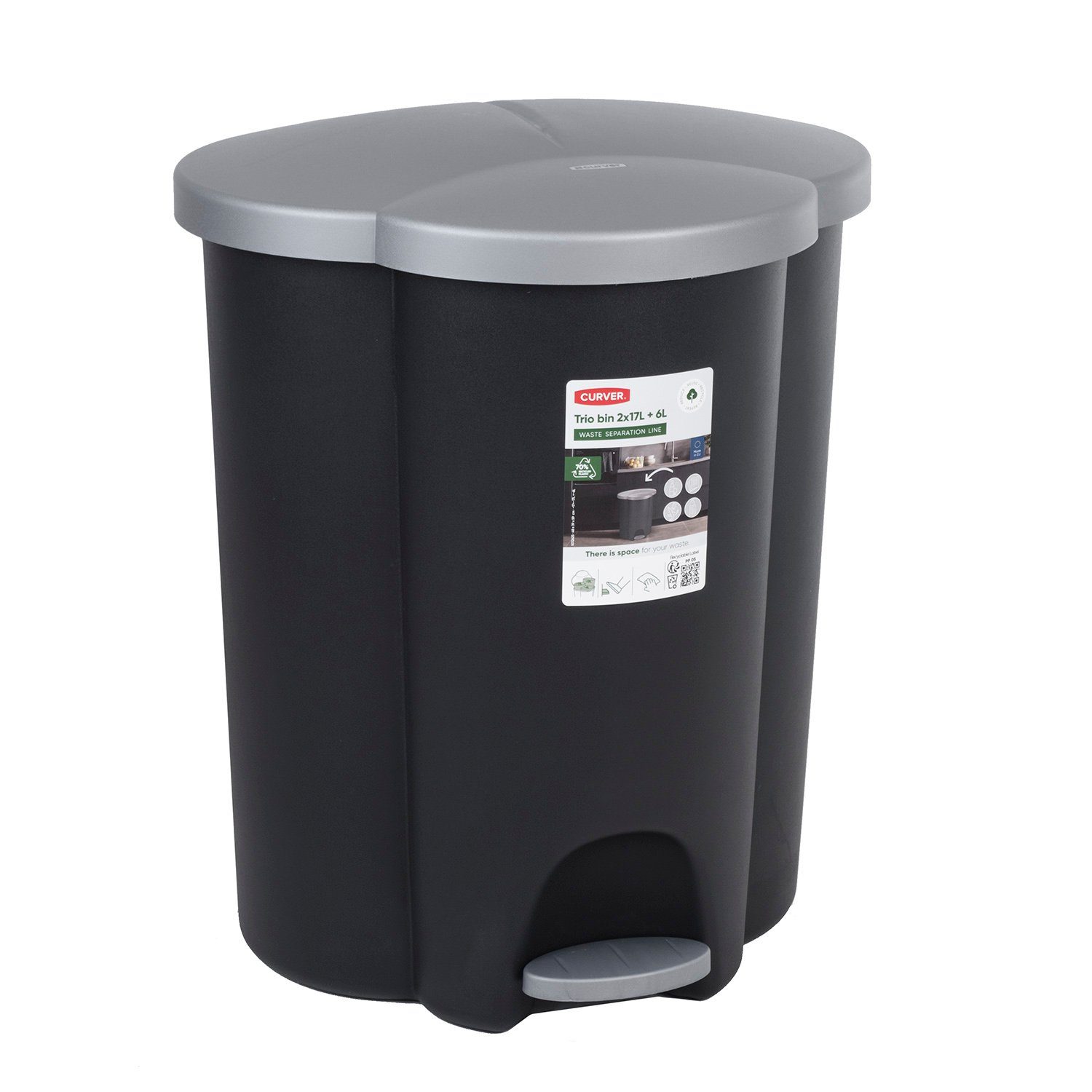 TRIO ist ein Abfalltrennbehälter mit drei praktischen Fächern im Inneren des Behälters. Um die Trennung zu erleichtern, wurde jede Kammer mit unterschiedlichen Farben gekennzeichnet: blau (17 l Fassungsvermögen), gelb (17 l Fassungsvermögen) und grün (6 l Fassungsvermögen).