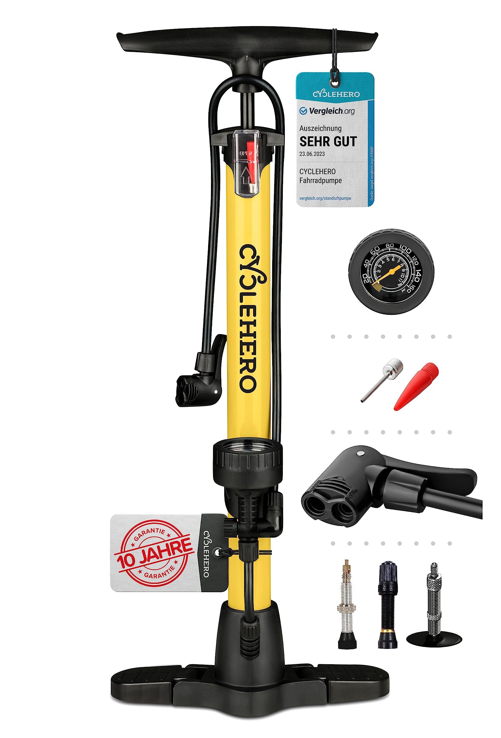 Die CYCLEHERO Fahrradpumpe ist das ideale Werkzeug für jeden Radfahrer, um mühelos den richtigen Reifendruck zu erreichen. Mit einer Höhe von 60 cm und einem übersichtlichen Manometer ist diese Pumpe sowohl leistungsstark als auch benutzerfreundlich.