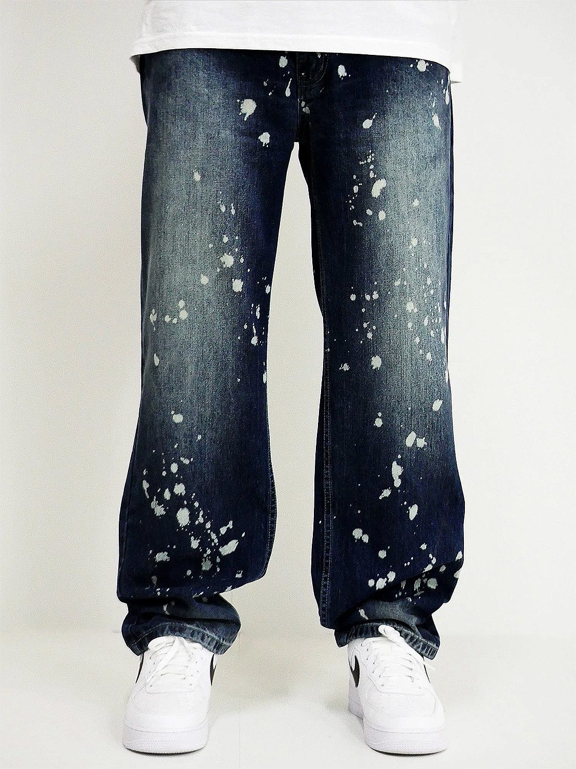 Loose Fit Jeans mit angesagtem White-Splatter-Look für auffällige Streetwear-Statements