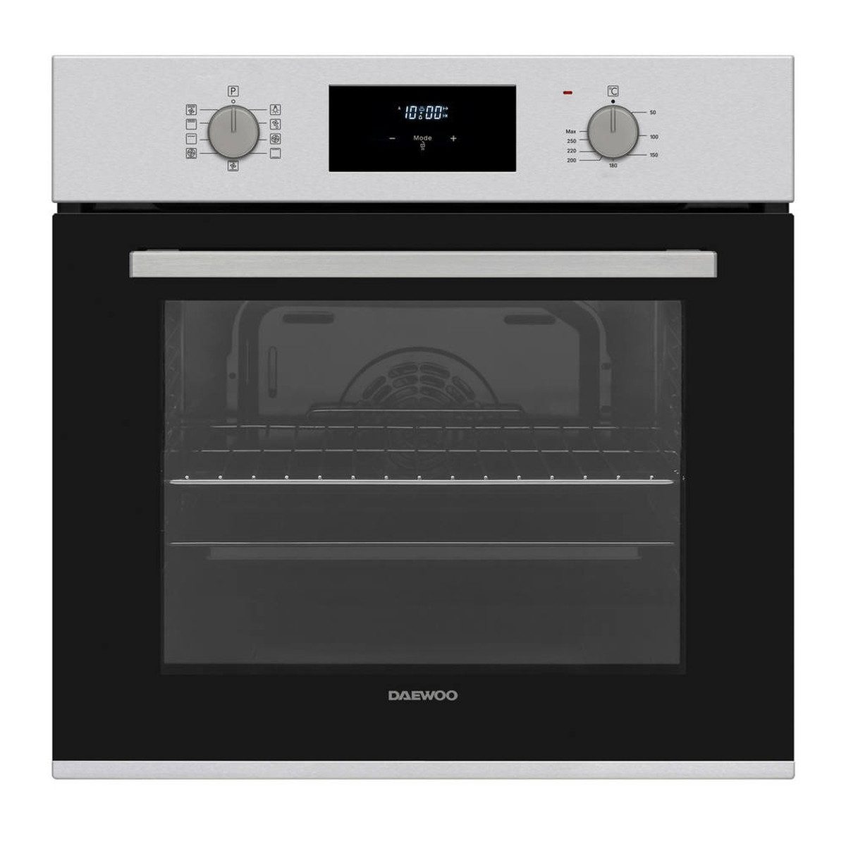 Daewoo Einbaubackofen mit Heißluft, Grill, AntiFingerPrint Oberfläche, LED Display mit Uhr und Timer, BO6ED19MINL-DE