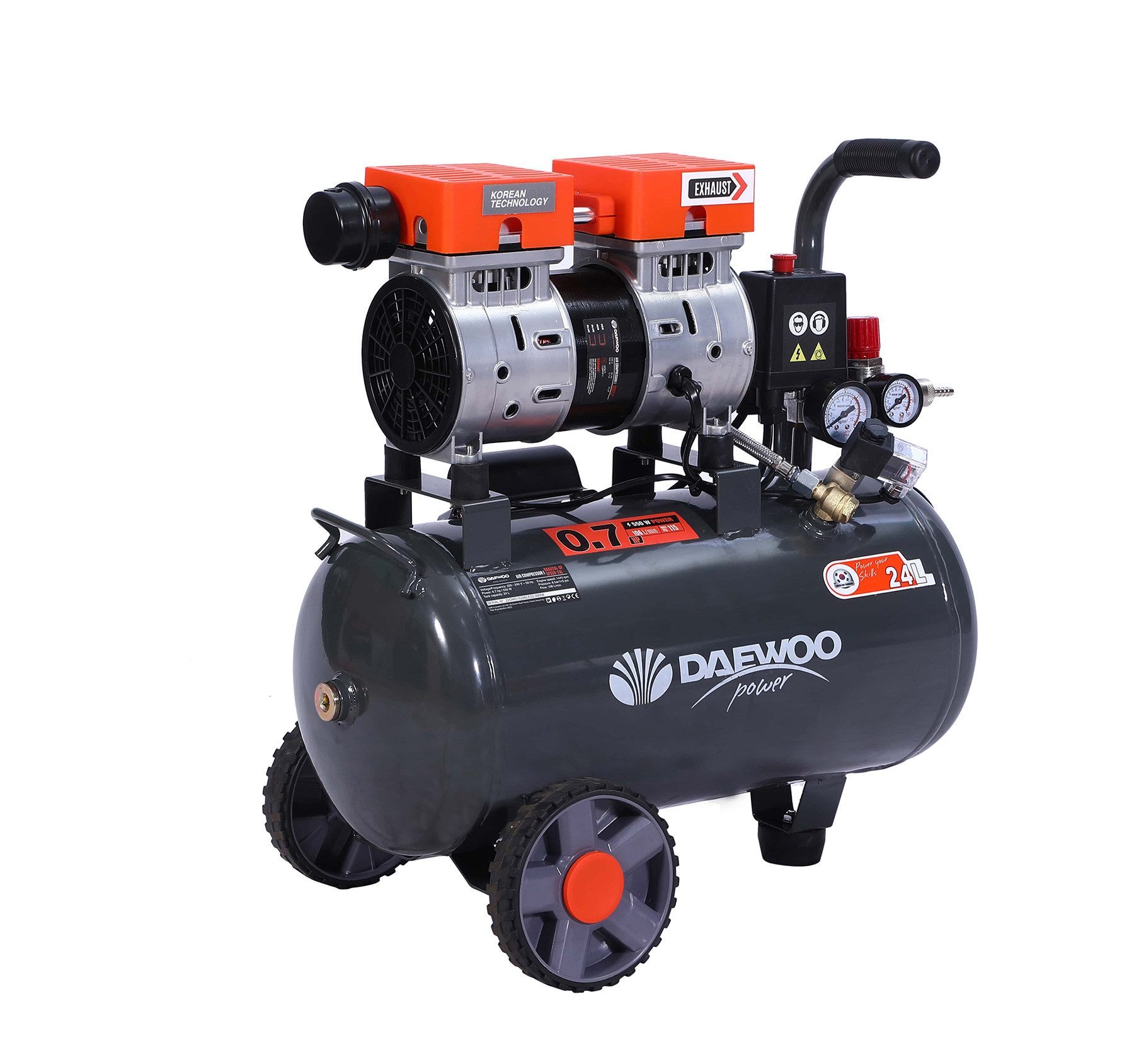 Der DAEWOO DAAX24L ölfreie und lautlose Kompressor mit 24 Liter Kesselinhalt ist ein leistungsfähiger und praktischer Kompressor, der sich durch seine ölfreie Technologie und seine leise Betriebsweise auszeichnet. Hier sind einige der Hauptmerkmale und Spezifikationen dieses Modells:
