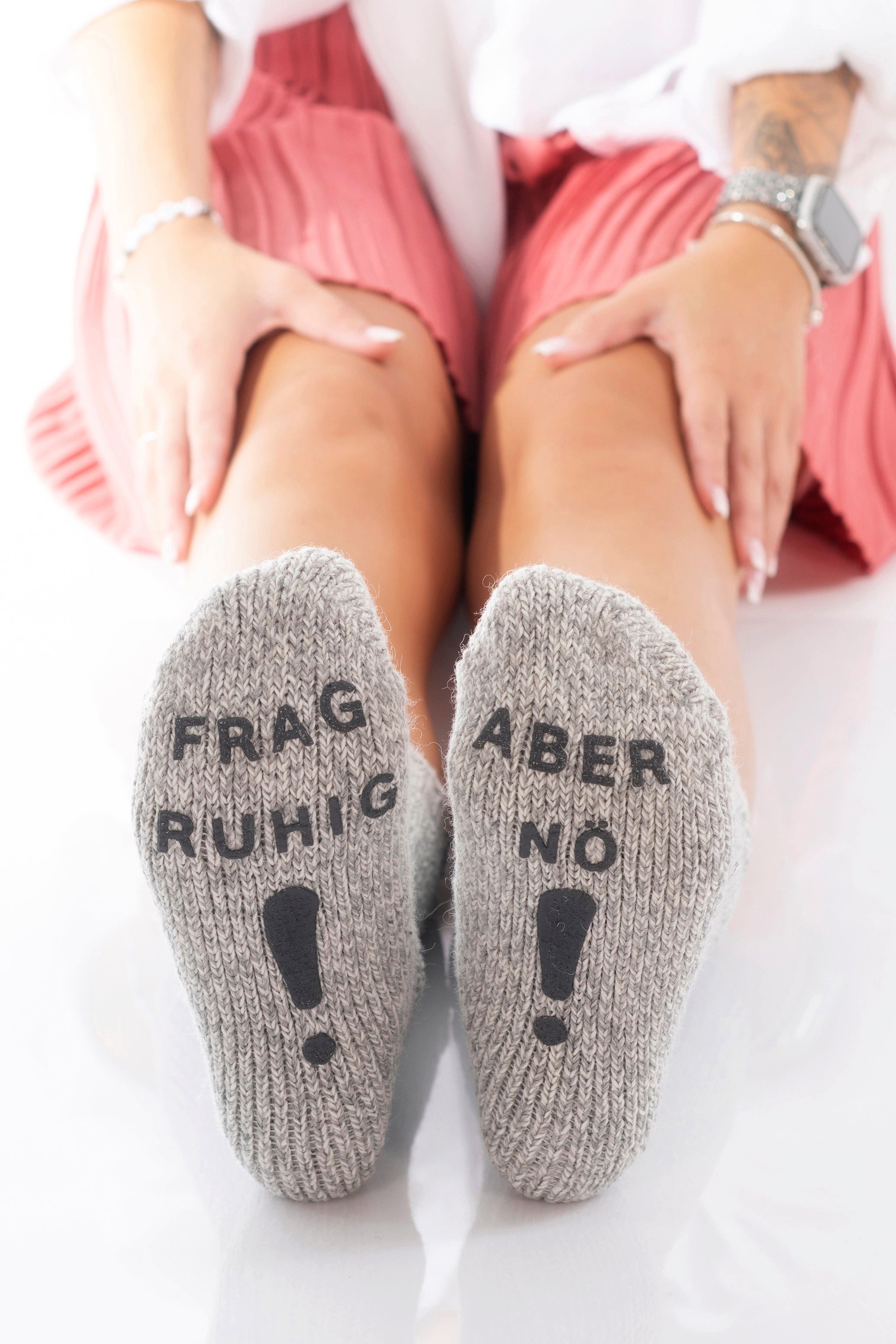 Darum verliebst du dich in ABER NÖ Unsere neue Lieblingskuschelsocke mit der Aufschrift "frag ruhig, aber nö" - verleitet dazu, dass wir demnächst bestimmt öfters die Füße einfach hoch legen und es uns gut gehen lassen :). Gestrickt aus ca. 50% recycelter Schurwolle, ist sie ein besonders nachhaltiges Produkt. Und wers gerne mag, krempelt das lang gestrickte Bündchen einfach um. Besondere Qualitätsmerkmal Die ABER NÖ Socke ist nicht nur eine witzige Spruchsocke, sondern auch eine hochwertige Pantoffelsocke, die für kuschelig warme Füße an kalten Tagen sorgt. So fällt ABER NÖ aus ABER NÖ fällt normal aus und sollte mit einem 39er Fuß auch in Размер 39/42 getragen werden.