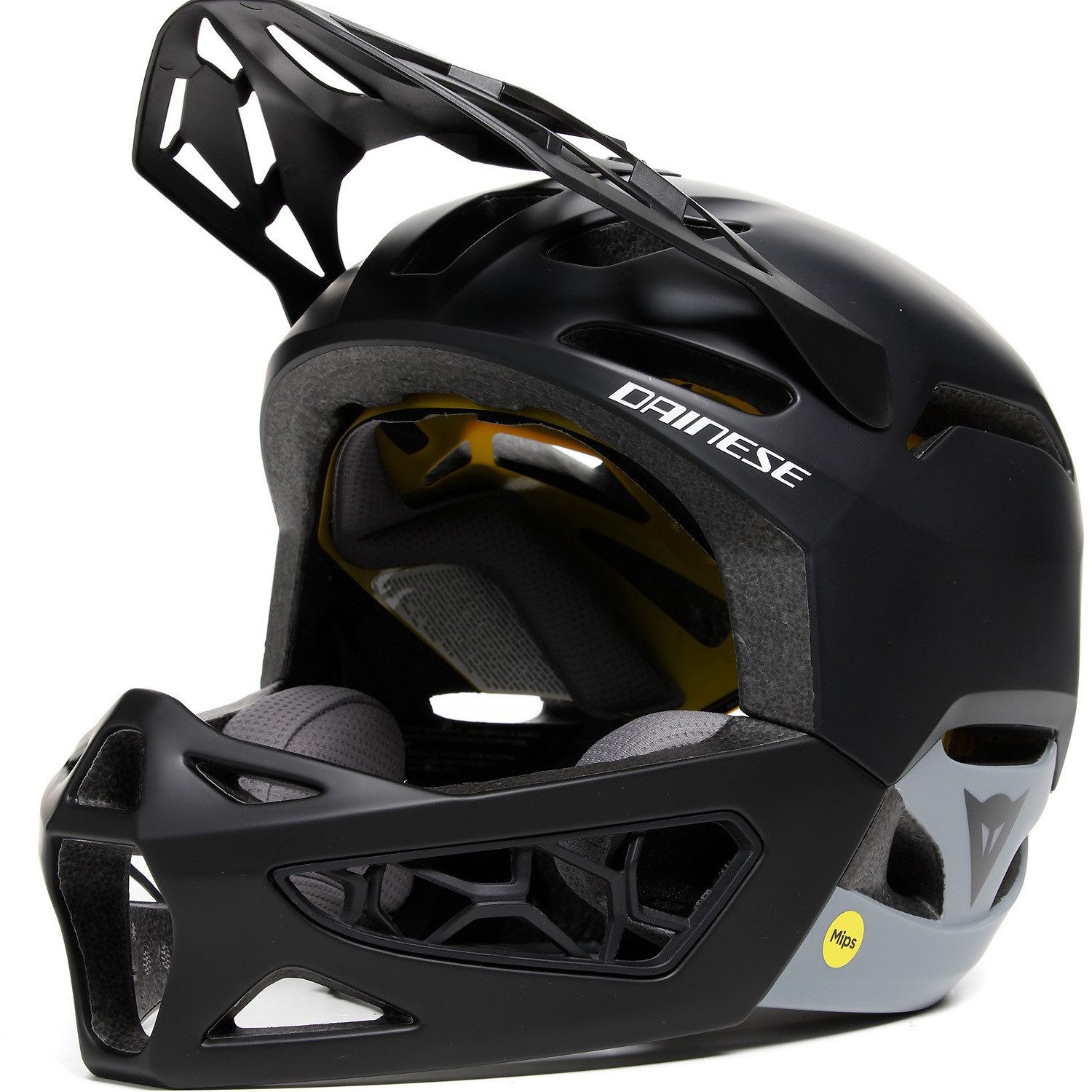 Die Sicht ist auf jeder Strecke und unter allen Bedingungen perfekt dank des weiten Sichtfelds, des Kinnschutz-Designs, das die Sicht auch in den anspruchsvollsten Passagen unterstützt, und des flexiblen und kippverstellbaren starren Helmschirms, der einhändig, auch mit Handschuhen, bedienbar ist. Außerdem ist die Form der Schale dafür ausgelegt, die Schutzbrille aufzunehmen, wenn diese nicht getragen wird, und bildet die perfekte Ergänzung zur MTB-Schutzbrille DAINESE Linea Goggles.