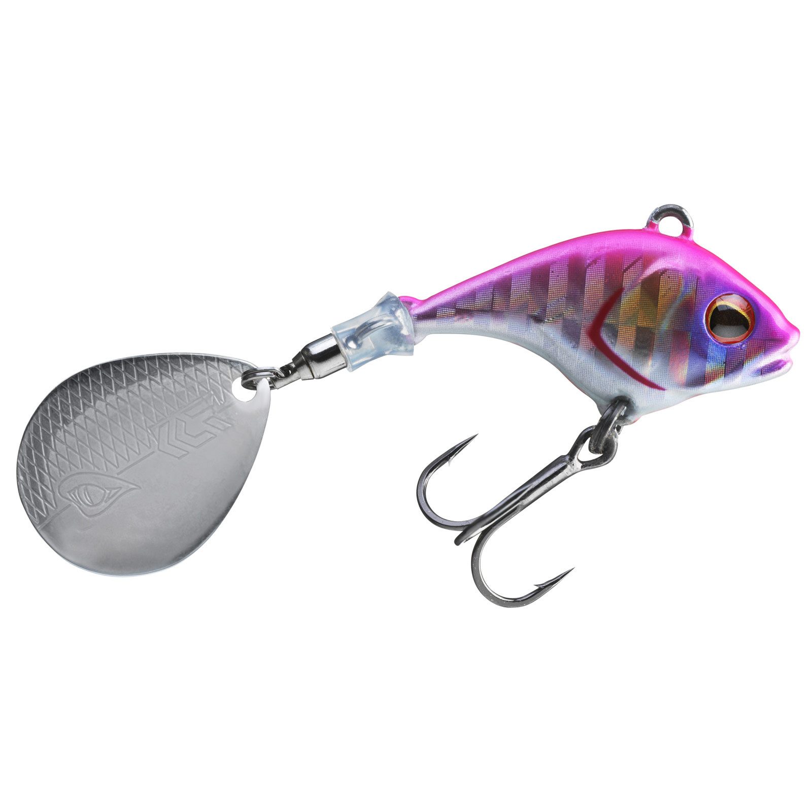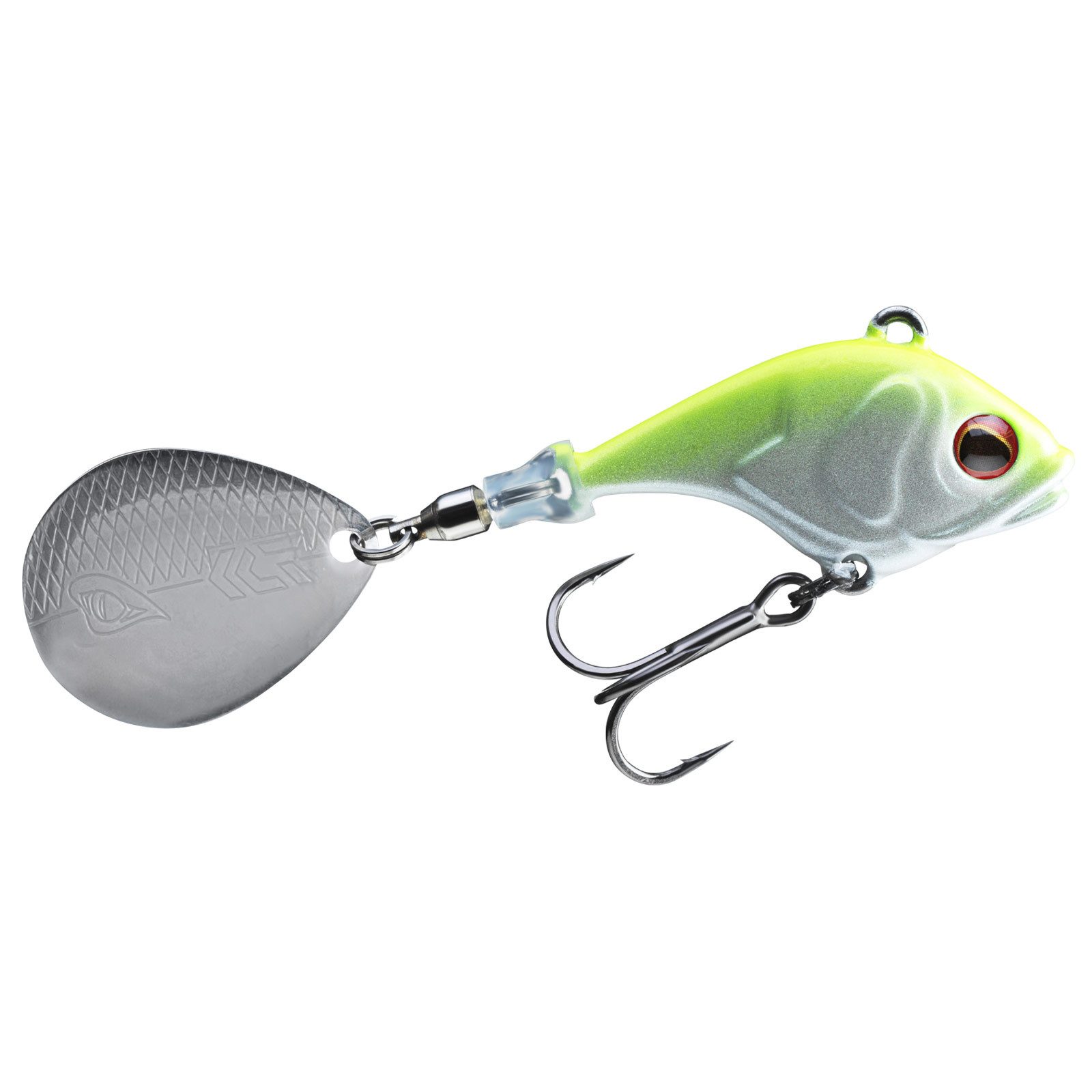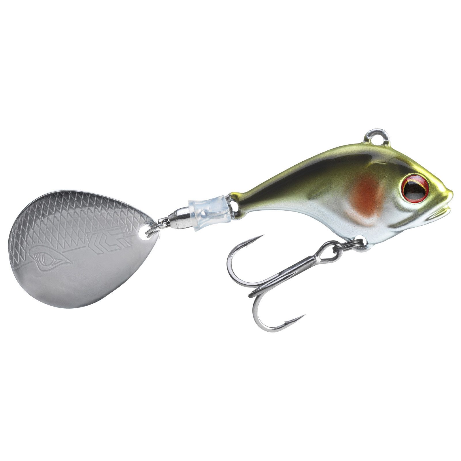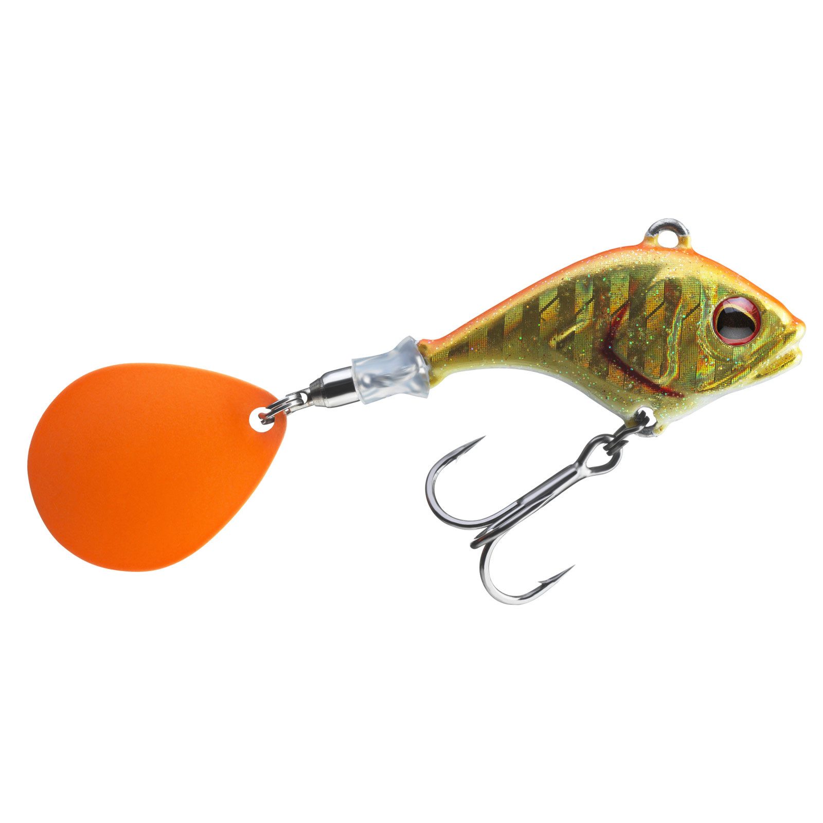 Durch die kompakte Körperform lässt sich der Köder extrem weit werfen und taucht schnell auf Tiefe ab. Bei der Führung spürt man die Aktion bis ins Handteil der Rute – neben dem rotierendem Spinnerblatt flankt dabei der gesamte Körper und sendet zusätzliche Vibrationen aus.