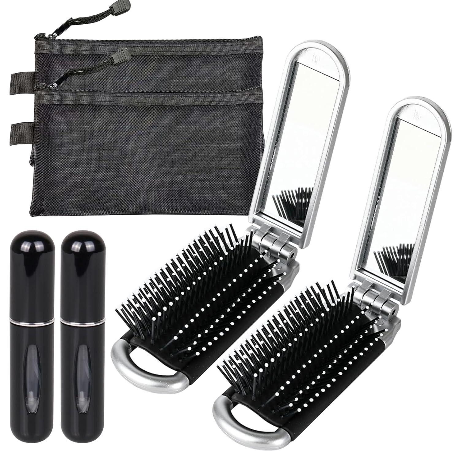 Das Mini-Reise Haarbürste mit Spiegel Set ist vielseitig einsetzbar und perfekt für den täglichen Gebrauch. Die praktische faltbare Konstruktion ermöglicht es, die Bürste überallhin mitzunehmen. Die mitgelieferten Nachfüllflaschen für Parfümzerstäuber und die Netz-Make-up-Taschen ergänzen dieses Set perfekt für Reisen oder Geschäftsreisen.