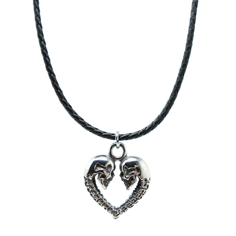 HALSKETTE SKULL HEART Bei dieser Halskette wurde in Kombination aus Leder und hochwertigen 316L Edelstahl ein einzigartiges Schmuckstück geschaffen. Durch die Verbindung edler Materialien ist diese Lederhalskette exzellent im Tragekomfort und verleiht jedem Outfit einen Eleganten und dennoch lässigen Touch. Ein schönes Geschenk an Familie und Freunde. • Verschluss: Drehverschluss • Material: 316L Edelstahl / Rindsleder • Длина: 50 cm oder 60 cm • Gewicht: 13 gr • Kettenbreite: 3 oder 4 mm • Anhänger: Edelstahl / 28 x 34 mm • Gratis: Schmuckbox