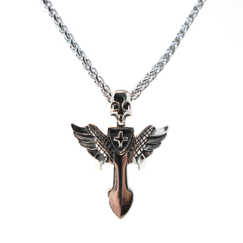 Kette mit Anhänger Lederkette Edelstahlkette 316L FLÜGELSCHWERT