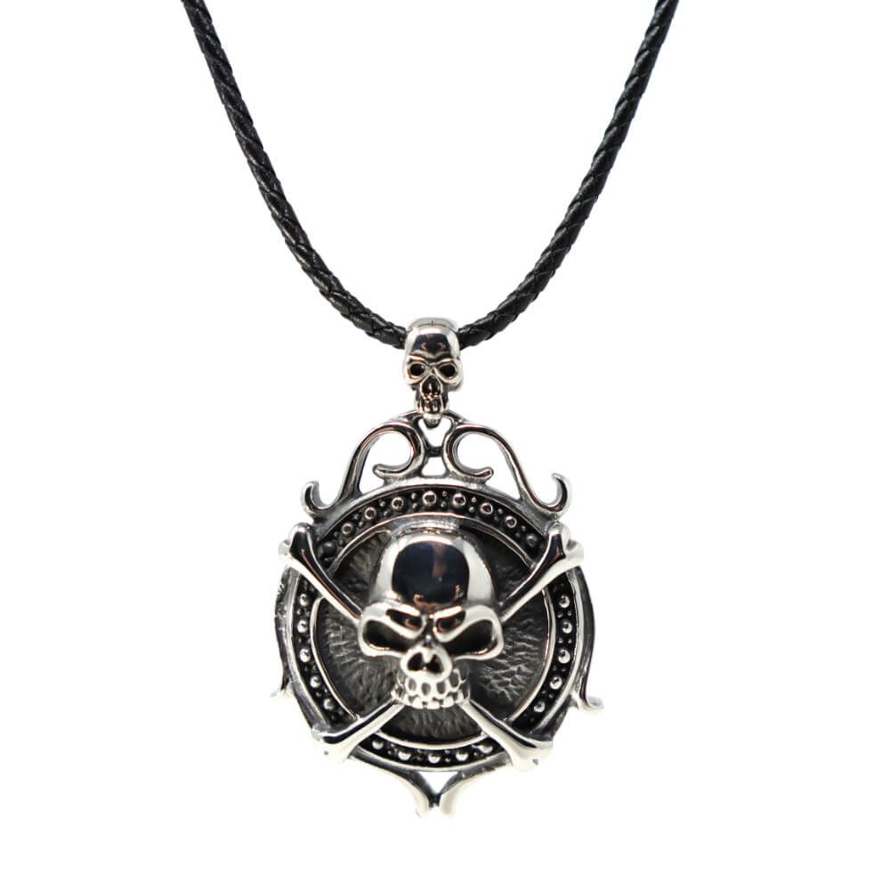 Kette mit Anhänger Lederkette Edelstahlkette 316L PIRATEN AMULETT