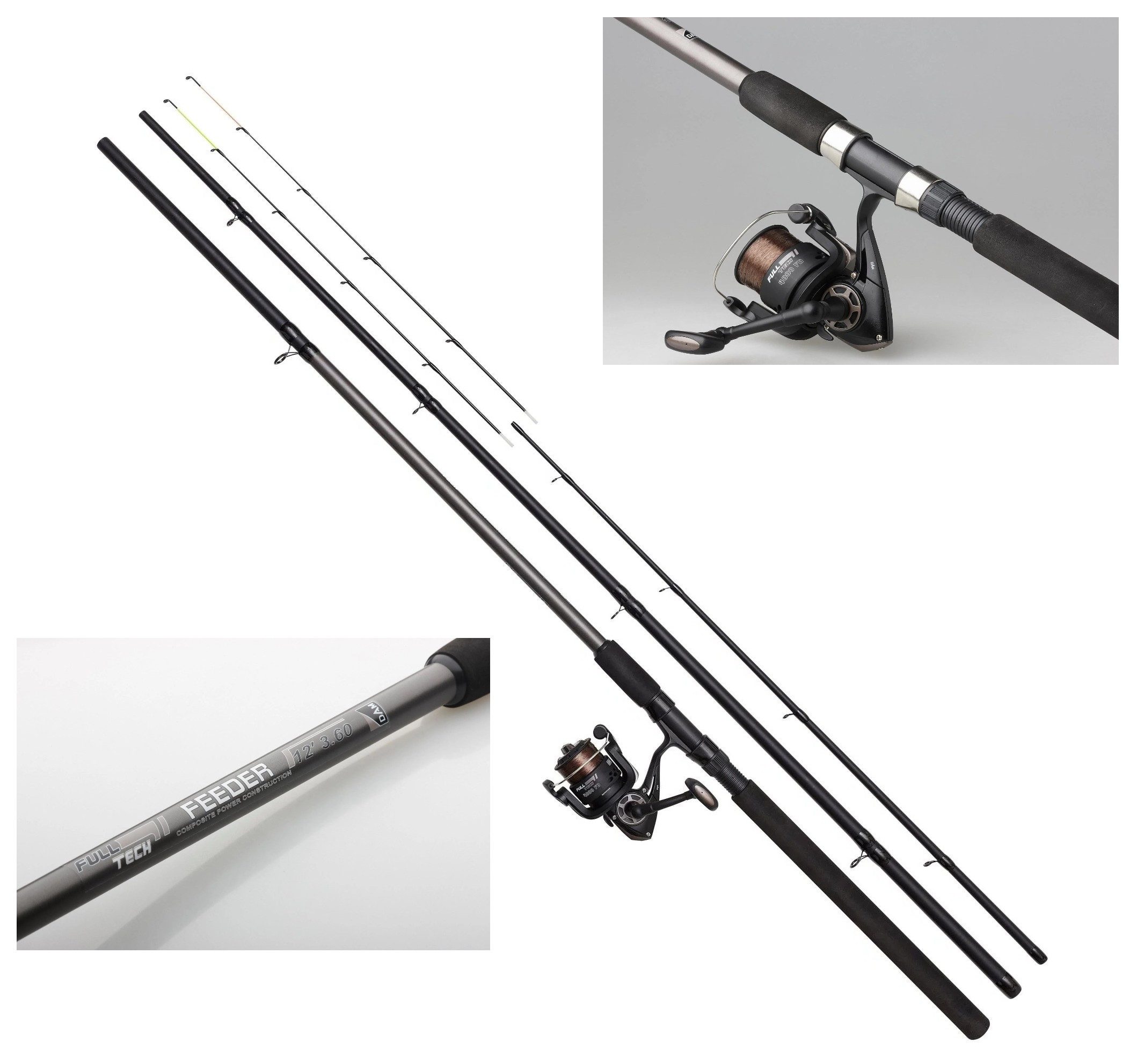 Combo-SET in 3 verschiedenen Вариантыn, bespult mit starker monofiler Schnur. Meistern Sie das Feederfischen für wenig Geld mit der erschwinglichen Full-Tech-Feeder-Combo von DAM, die eine steife und gut ausbalancierte Fiberglasrute mit einer leichtgängigen Frontbremsrolle kombiniert. Die Rute, die auch einen griffigen EVA-Griff, SIC-Ringe und drei verschiedene solide Spitzen aufweist, ist entweder in 11-, 12- oder 13 Fuß erhältlich. Die 11-Fuß- und 12-Fuß-Versionen werden mit einer 4000er-Rolle geliefert, die mit dunkelbrauner 10-lb/0,30-mm-Monofil Schnur vorgespult ist, während die 13-Fuß-Version mit einer 6000er-Rolle geliefert wird, die mit dunkelbrauner 15-lb/0,40-mm-Monofil Schnur vorgespult ist.