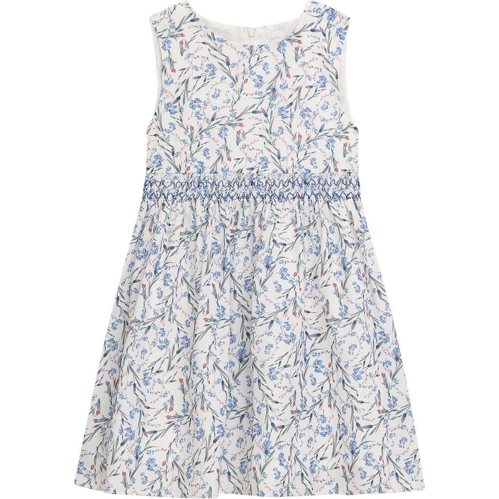 leichtes Sommerkleid, Kleid mit Smock-Taillenpartie, elegantes Mädchenkleid, weißes Kinderkleid mit Blumen