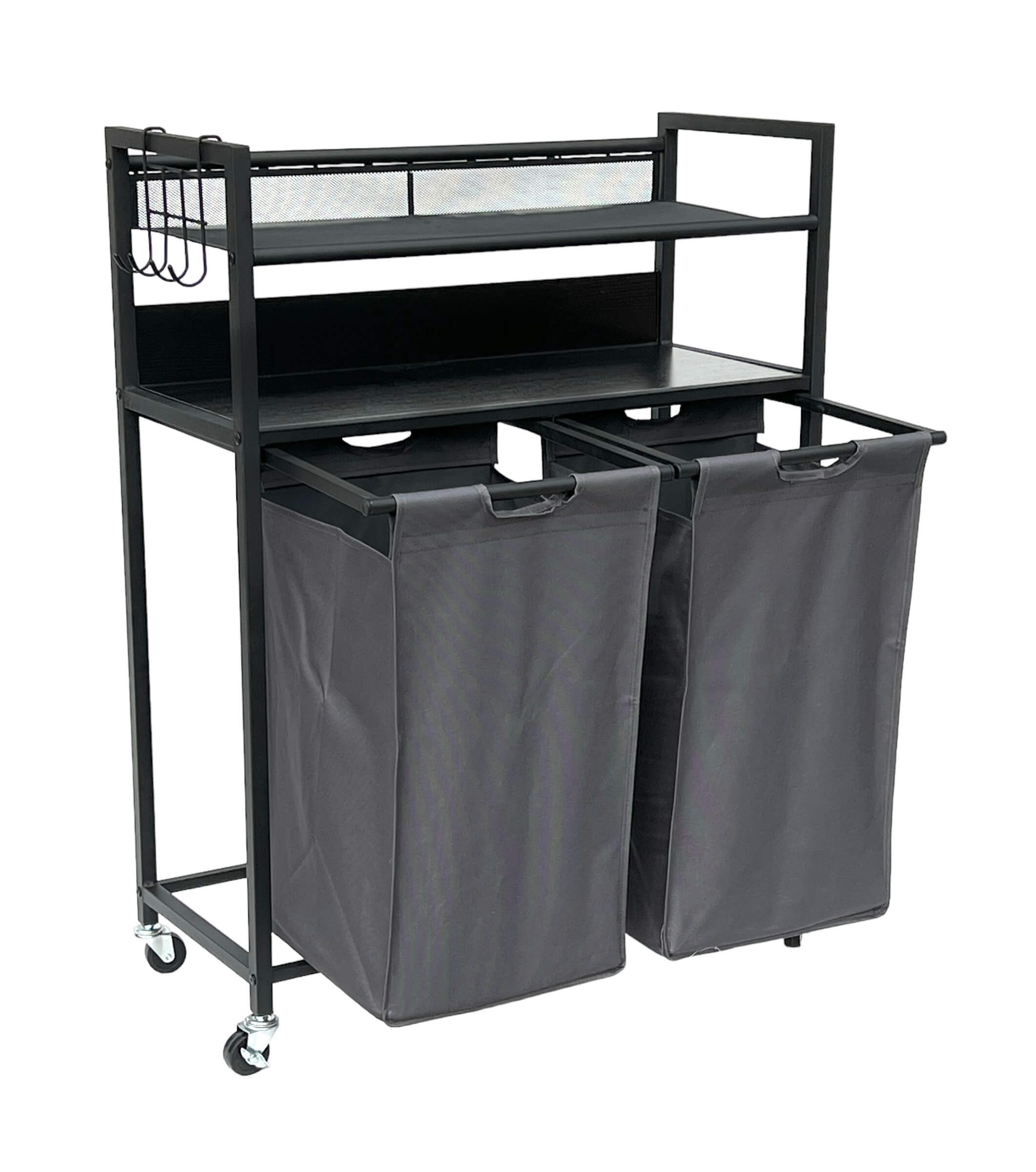 GROßER STAURAUM - Die Abmessungen dieses Wäschewagens ermöglichen eine effiziente Lagerung von Wäsche in zwei abnehmbaren, grauen Wäschesäcken. Seine Maße erlauben die einfache Einlagerung größerer Wäschemengen, während die abnehmbaren Säcke Flexibilität bei der Sortierung und dem Transport bieten. Ebenfalls können die beiden Ablagen und die abnehmbaren Haken als zusätzliche Aufbewahrungsmöglichkeiten dienen. ROBUSTE KONSTRUKTION - Hergestellt aus Metall, gewährleistet dieser Wäschesammler Stabilität und Langlebigkeit. Seine solide Struktur sichert nicht nur Ihre Wäsche, sondern gewährleistet auch eine langanhaltende Nutzung, die den täglichen Anforderungen standhält. BENUTZERFREUNDLICH UND MOBIL - Mit Rollen ausgestattet, bietet dieser Wagen mühelose Mobilität, um Ihre Wäsche von Raum zu Raum zu transportieren. Dank der praktischen Bremsen an den Rollen kann er sicher und stabil an einem Ort fixiert werden. SCHNELLE UND EINFACHE MONTAGE - Die mitgelieferte detaillierte Aufbauanleitung und das Montagematerial machen die Installation dieses Wäschewagens einfach und schnell. Innerhalb kürzester Zeit ist er einsatzbereit, um Ihnen bei der Organisation Ihres Haushalts zu helfen.