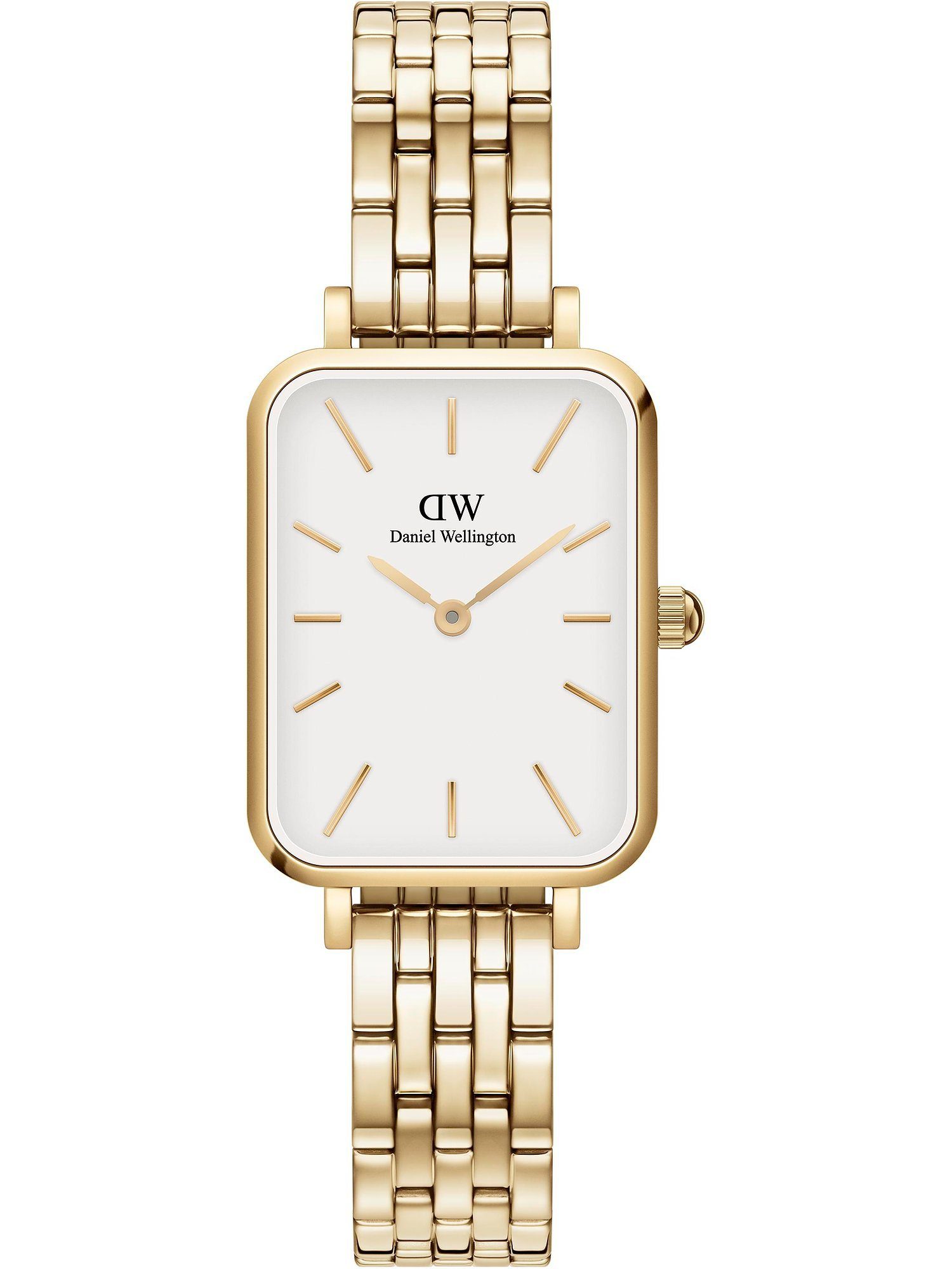 Die Zeitmesser von Daniel Wellington stehen für skandinavischen Minimalismus und das Streben nach Perfektion. Die außergewöhnlichen Uhrenkollektionen bieten edle Klassiker für Menschen mit exklusivem Geschmack. Eine perfekte Kombination aus lässig und elegant – das ist diese Damenuhr. Sie wird besonders durch das Edelstahl-Gehäuse und das robuste, aber dennoch schicke Band aus Edelstahl geprägt. Gehäuse und Armband der Daniel Wellington Quadro Link sind in Gold gehalten. Das weiße Ziffernblatt ist eine harmonische Ergänzung. Das eckige Gehäuse hat eine Breite von 20 mm und eine Длина von 26 mm. Ein Quarzwerk sorgt für die nötige Präzision. Das verwendete Mineralglas bietet eine gute Sicht und ist widerstandsfähig gegen alle Einflüsse, die bei normalem Gebrauch entstehen. Dieser Zeitmesser ist bis zu einer Tiefe von 30 Metern wasserdicht (3 Bar), was bedeutet, dass er problemlos Spritzwasser - wie es beim Händewaschen, im Regen oder anderem leichten Wasserkontakt entsteht - standhält. Praktisch und sicher zugleich: Die Faltschließe sorgt für leichtes Anlegen und guten Halt am Arm. Mehr Variabilität geht nicht: Durch das leicht austauschbare Armband lässt sich der Look der Uhr ganz einfach anpassen. Kurz gesagt: Die Daniel Wellington Quadro Link Damenuhr ist ein Statement für guten Geschmack - und ein zuverlässiger Begleiter im Alltag.