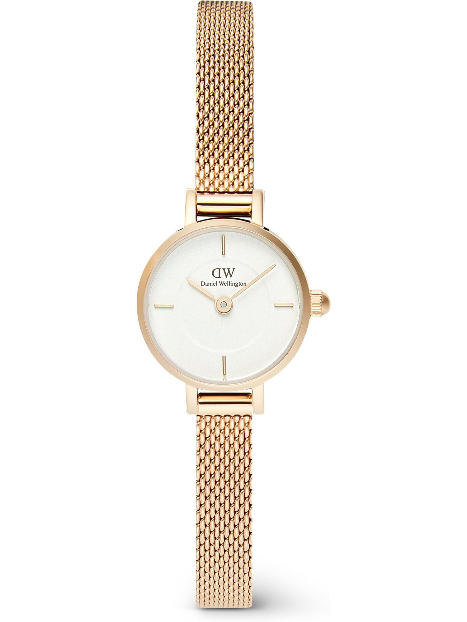 Die Zeitmesser von Daniel Wellington stehen für skandinavischen Minimalismus und das Streben nach Perfektion. Die außergewöhnlichen Uhrenkollektionen bieten edle Klassiker für Menschen mit exklusivem Geschmack. Gehäuse und Armband der Daniel Wellington Petite Mini sind in Roségold gehalten. Das champagnerfarbene Ziffernblatt ist eine harmonische Ergänzung. Назадhaltend, aber nicht unauffällig nimmt das runde Gehäuse (Durchmesser: 19 mm) am Handgelenk Platz. Das integrierte Quarzwerk garantiert zuverlässige Präzision. Technisches Extra: Anstatt des Sekundenzeigers ist eine Kleine Sekunde integriert. Das verwendete Mineralglas bietet eine gute Sicht und ist widerstandsfähig gegen alle Einflüsse, die bei normalem Gebrauch entstehen. Der Zeitmesser ist bis zu 3 Bar wasserdicht – Spritzwasser und Regen machen ihm nichts aus. Die Faltschließe des Armbands ist einfach zu handhaben und sorgt für sicheren Halt. Mehr Variabilität geht nicht: Durch das leicht austauschbare Armband lässt sich der Look der Uhr ganz einfach anpassen. Kurzum: Die Daniel Wellington Petite Mini Damenuhr ist besonders chic und präzise gefertigt – die perfekte Wahl für alle, die ein zuverlässiges Fashion-Statement fürs Handgelenk suchen.