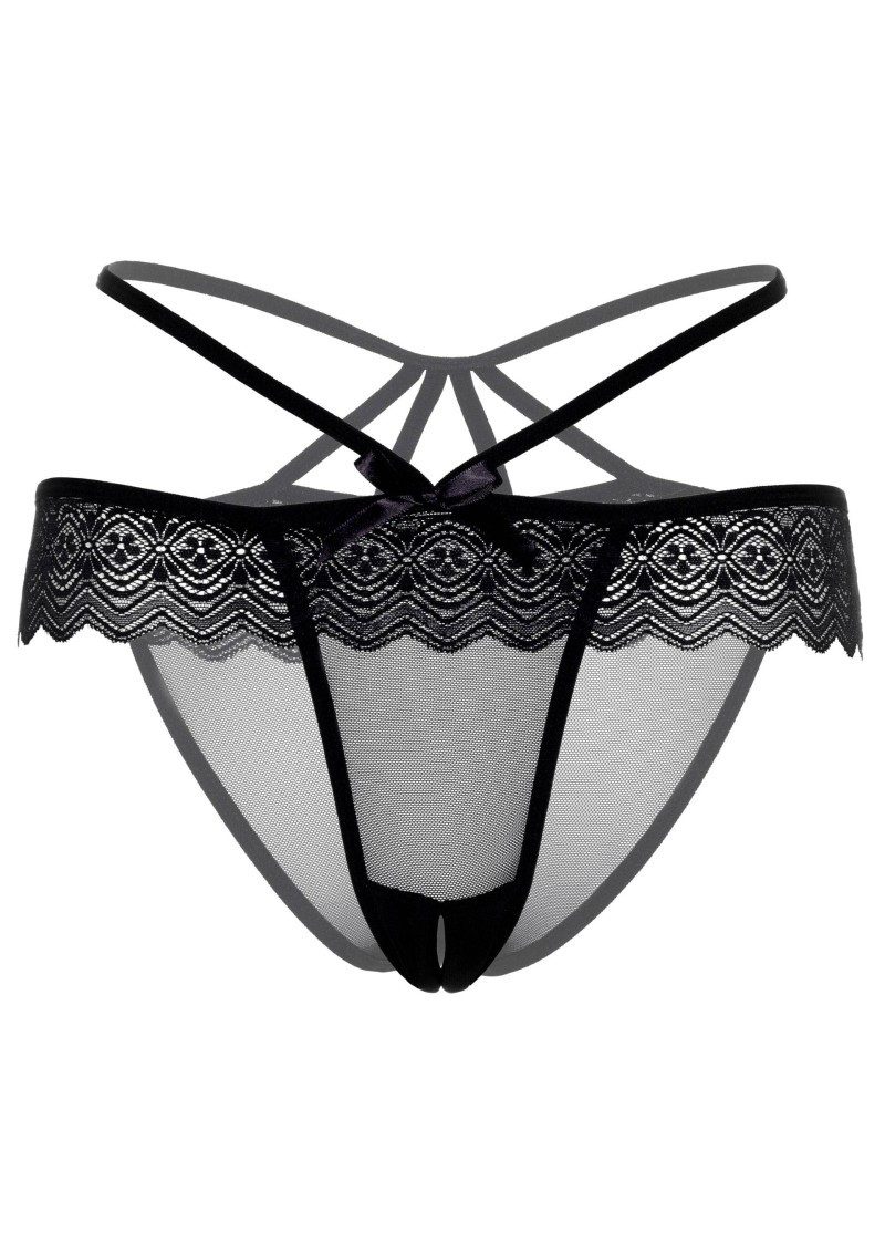 Optik | Slip aus zwarter Spitze und Mesh, mit Schleife auf Vorderseite |