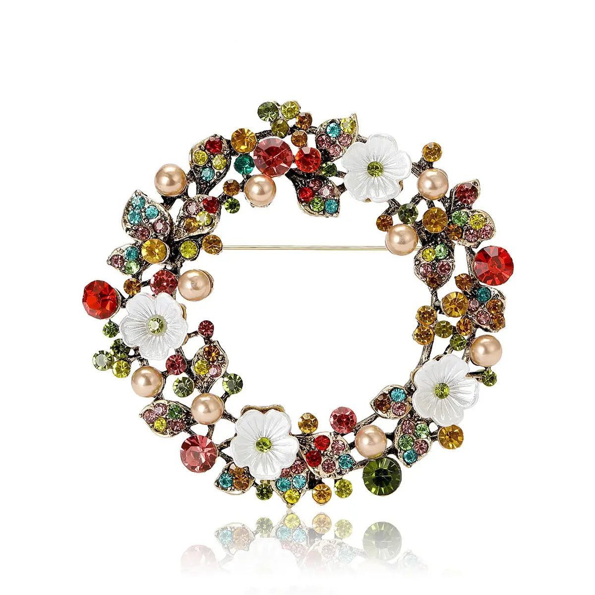 Entdecken Sie unsere elegante vintage Brosche in Form eines bezaubernden Blumenkranzes. Dieses einzigartige Schmuckstück überzeugt durch: