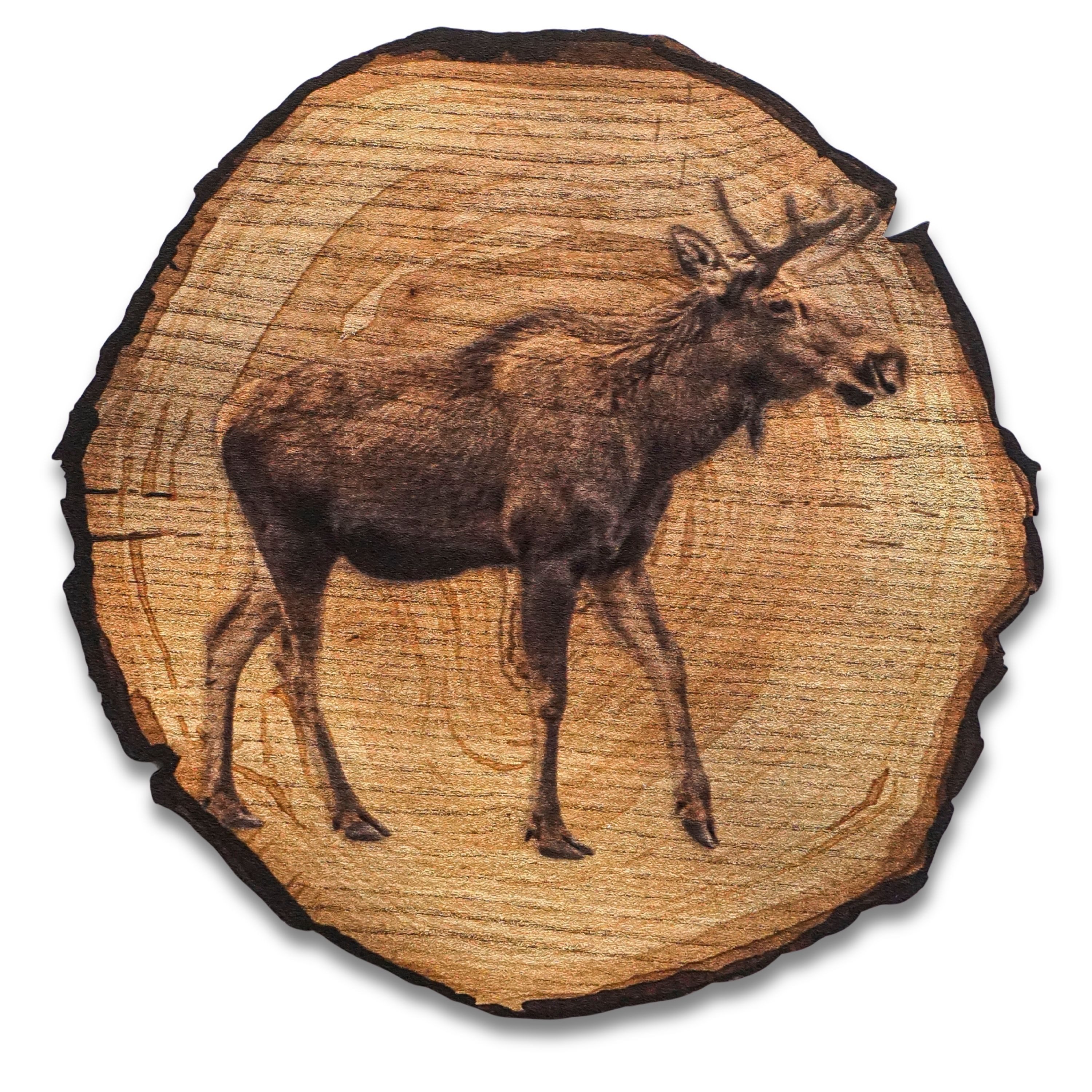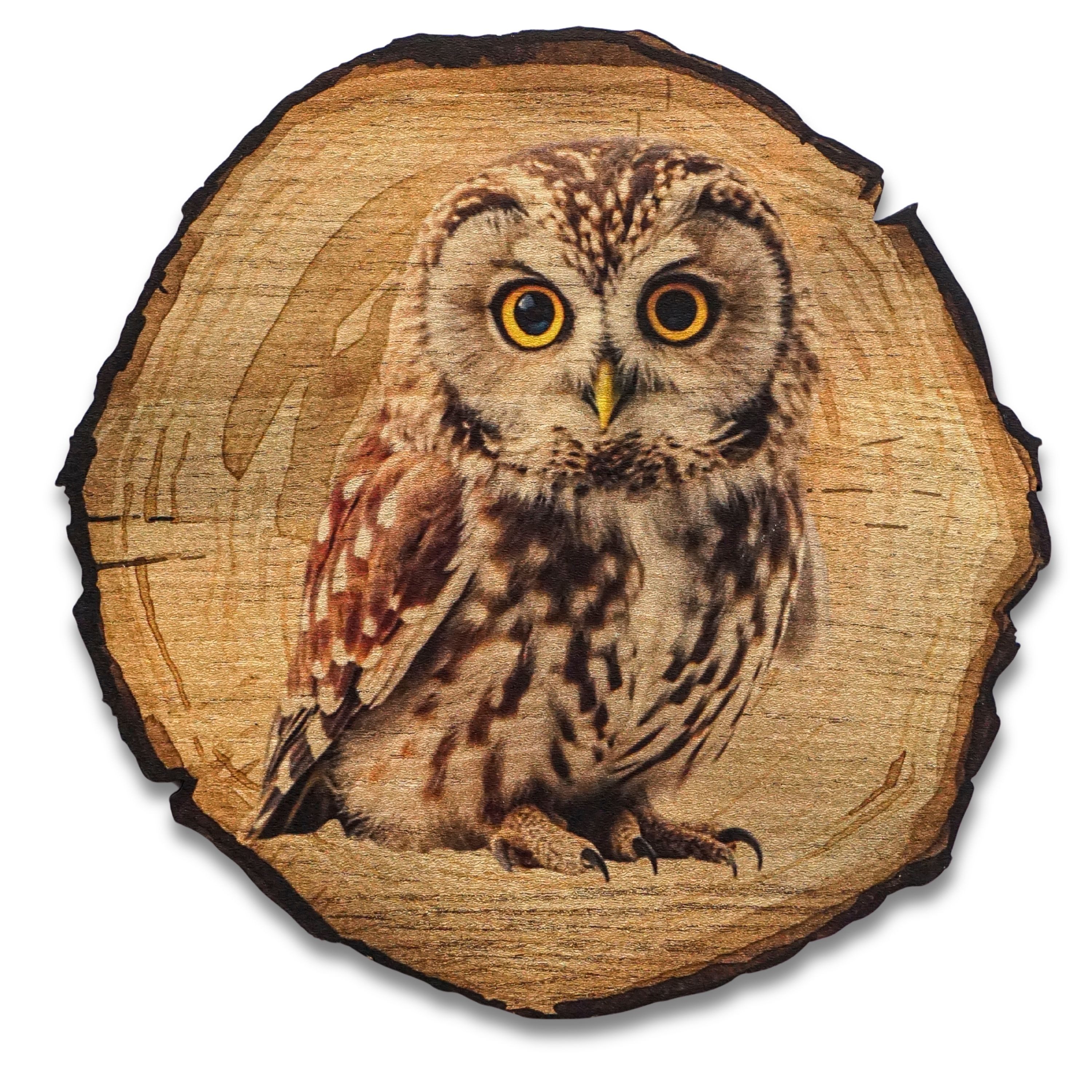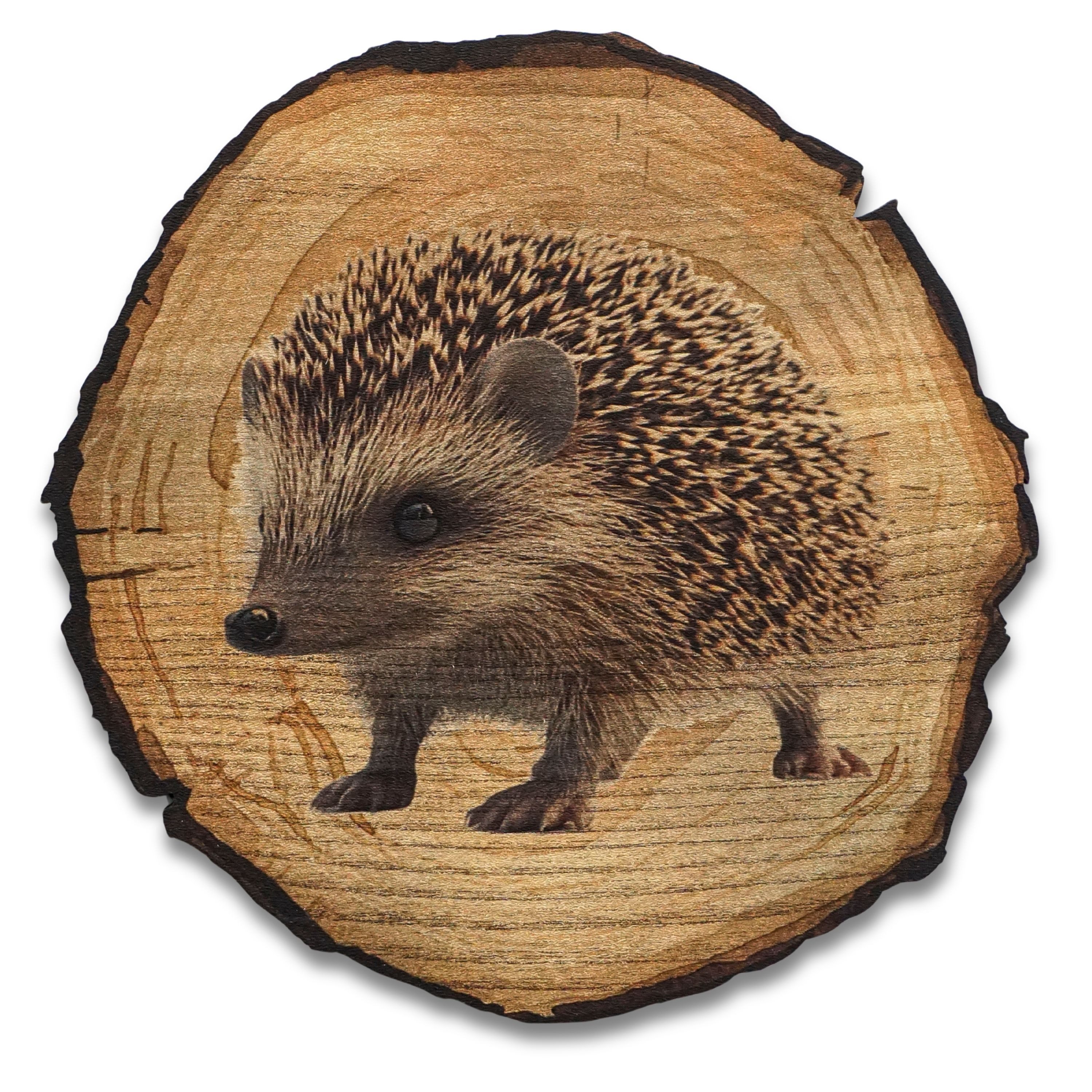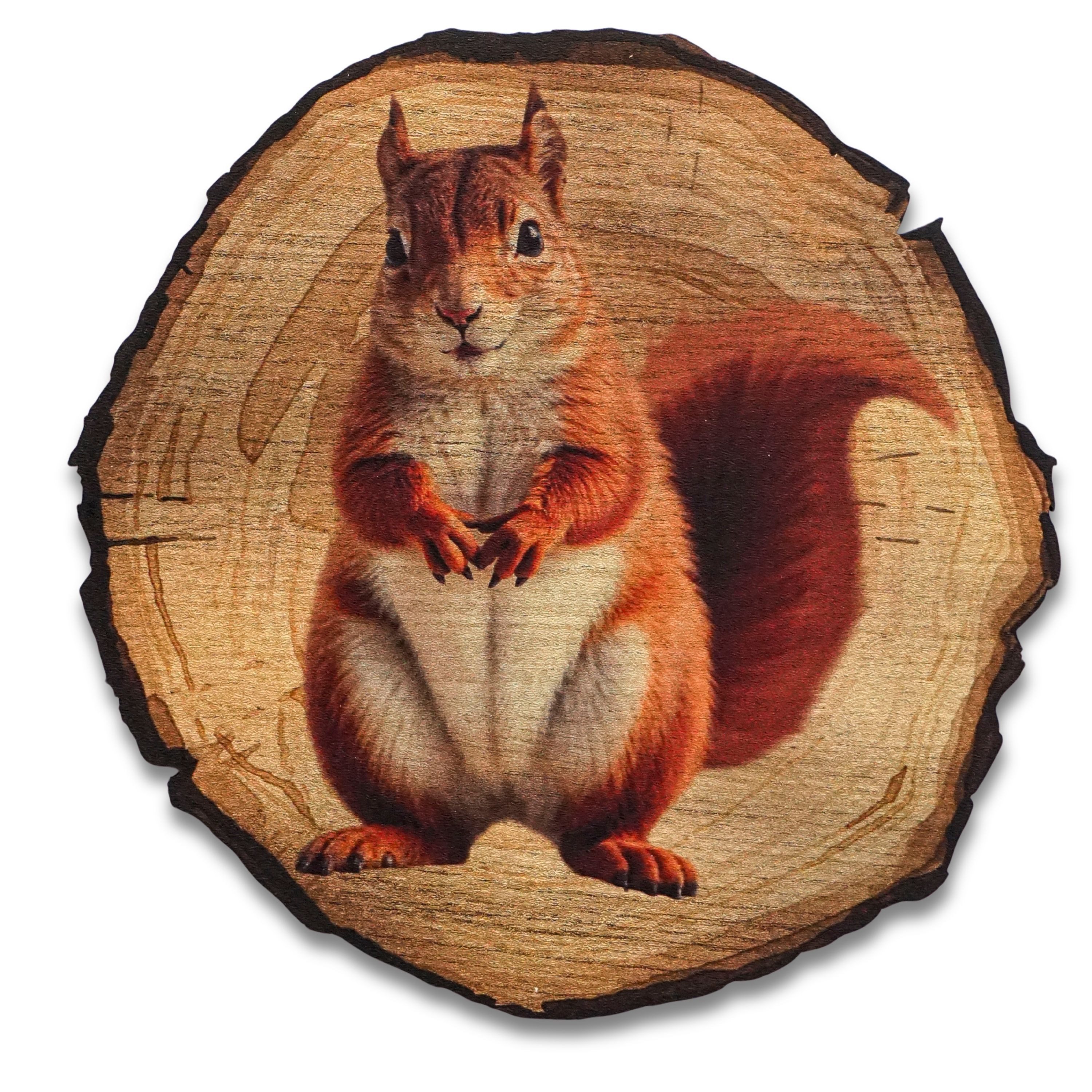 Jedes Motiv wird in brillanter Druckqualität auf eine runde Trägerplatte aufgebracht, die optisch einer echten Baumrindenscheibe zum Verwechseln ähnlich sieht – inklusive Maserung, Rindenstruktur und rustikaler Holzoptik. Die stabile Ausführung sorgt für Formstabilität und lange Haltbarkeit, während die Tiermotive lebendig und kontrastreich zur Geltung kommen.