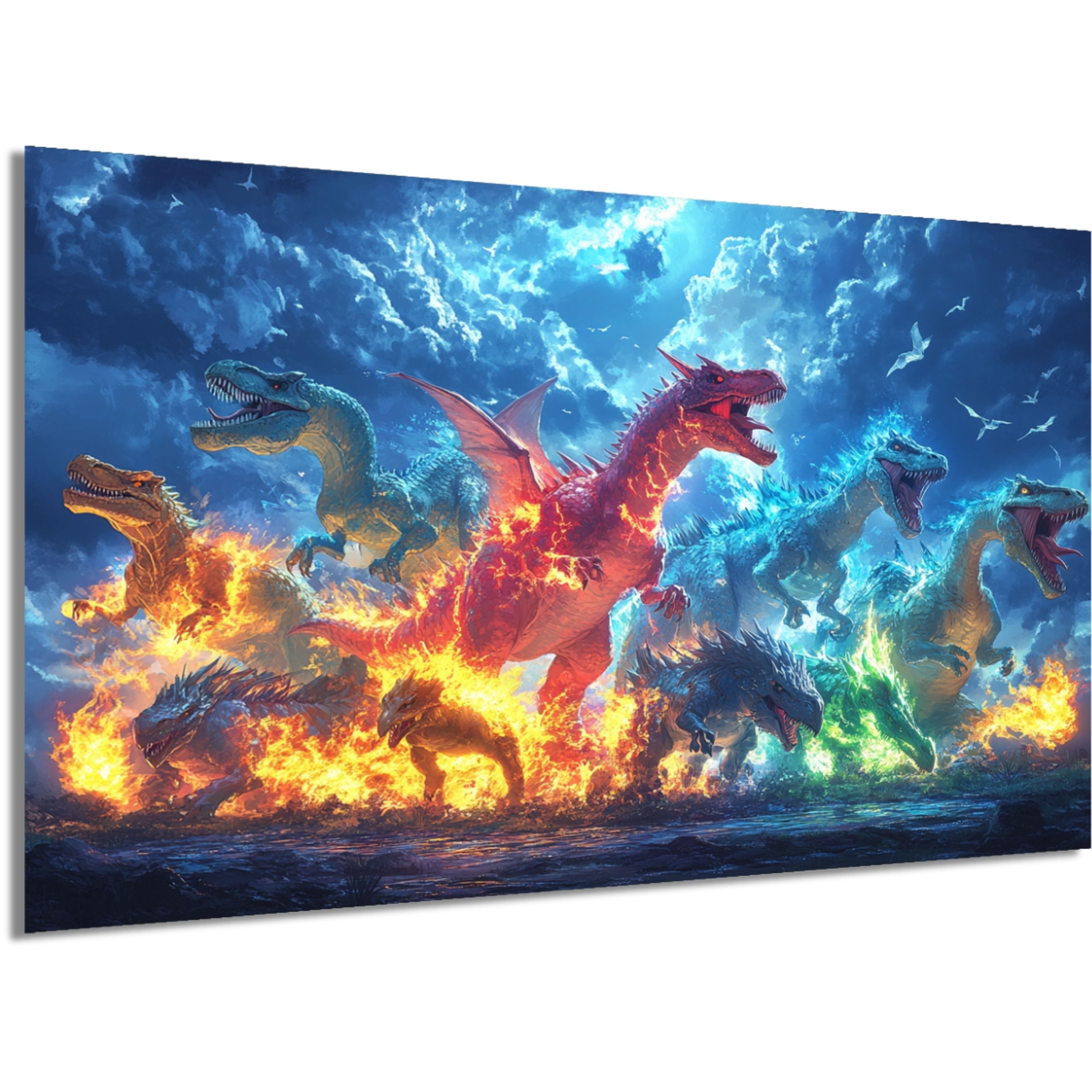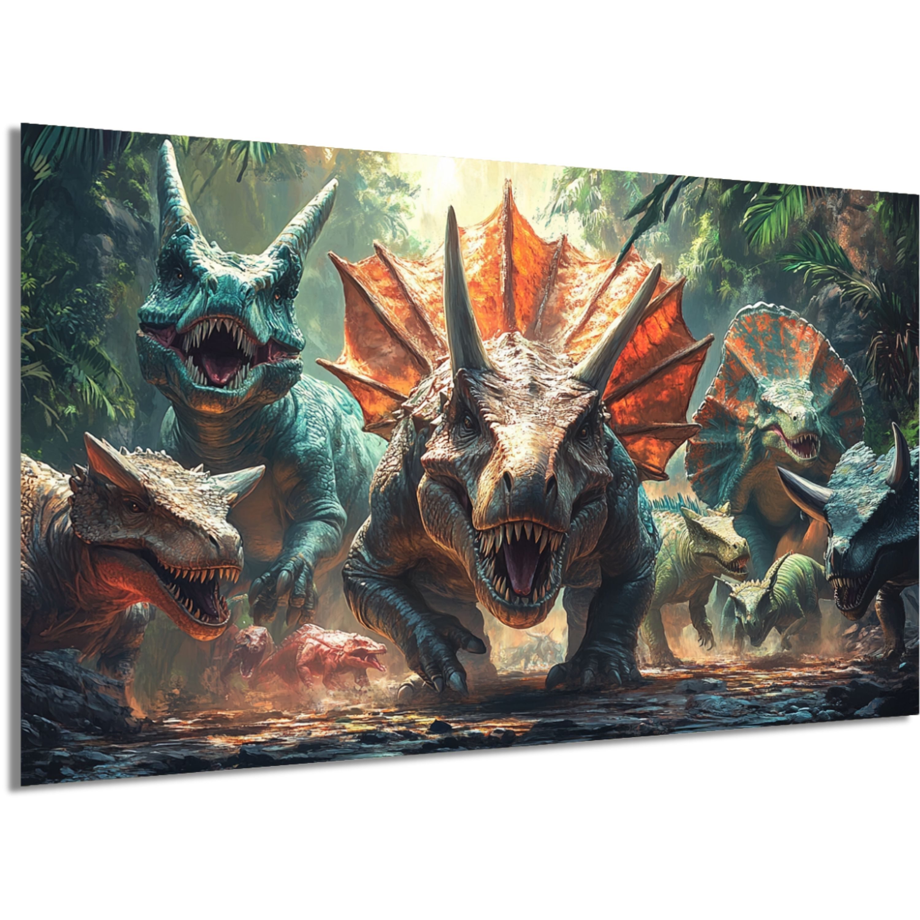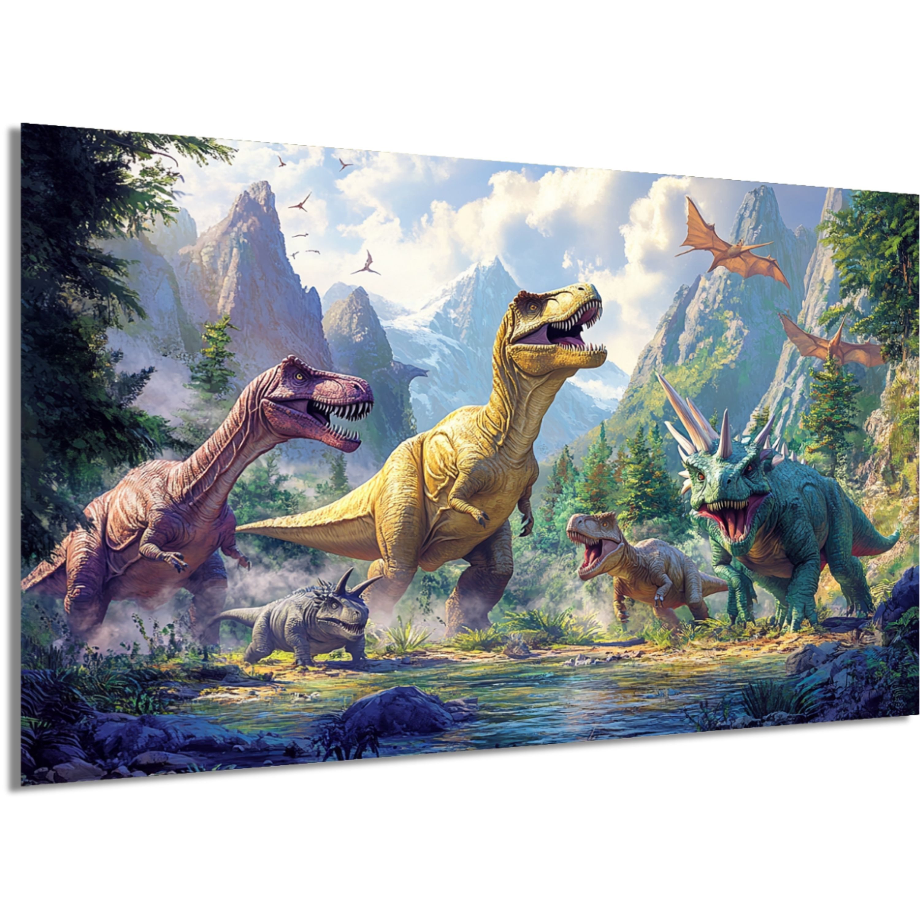 Produktvorteile im Überblick: - Moderne Designs für Kinder in verschiedenen Farben mit Dinomotiven, perfekt fürs Kinderzimmer oder Spielzimmer - Hochwertiger Druck auf stabilem 6mm HDF-Träger – langlebig, robust und formstabil - Vormontierter Metallhaken – einfache und sichere Wandmontage ohne zusätzlichen Aufwand - Pflegeleichte Oberfläche – mit feuchtem Lappen abwischbar, für langanhaltende Frische - Erhältlich in verschiedenen Größen von 30x20 cm bis 120x80 cm – ideal für kleine und große Wände
