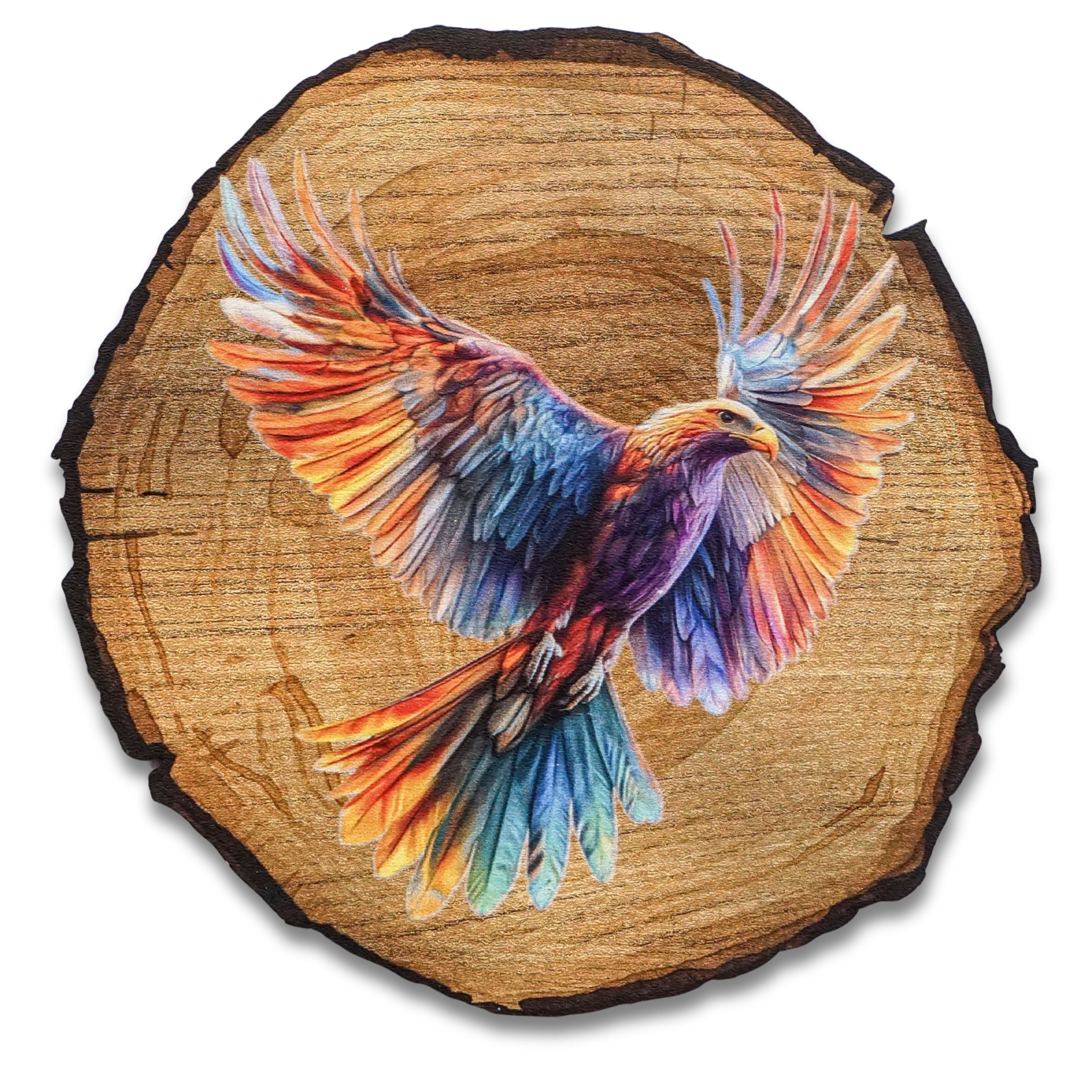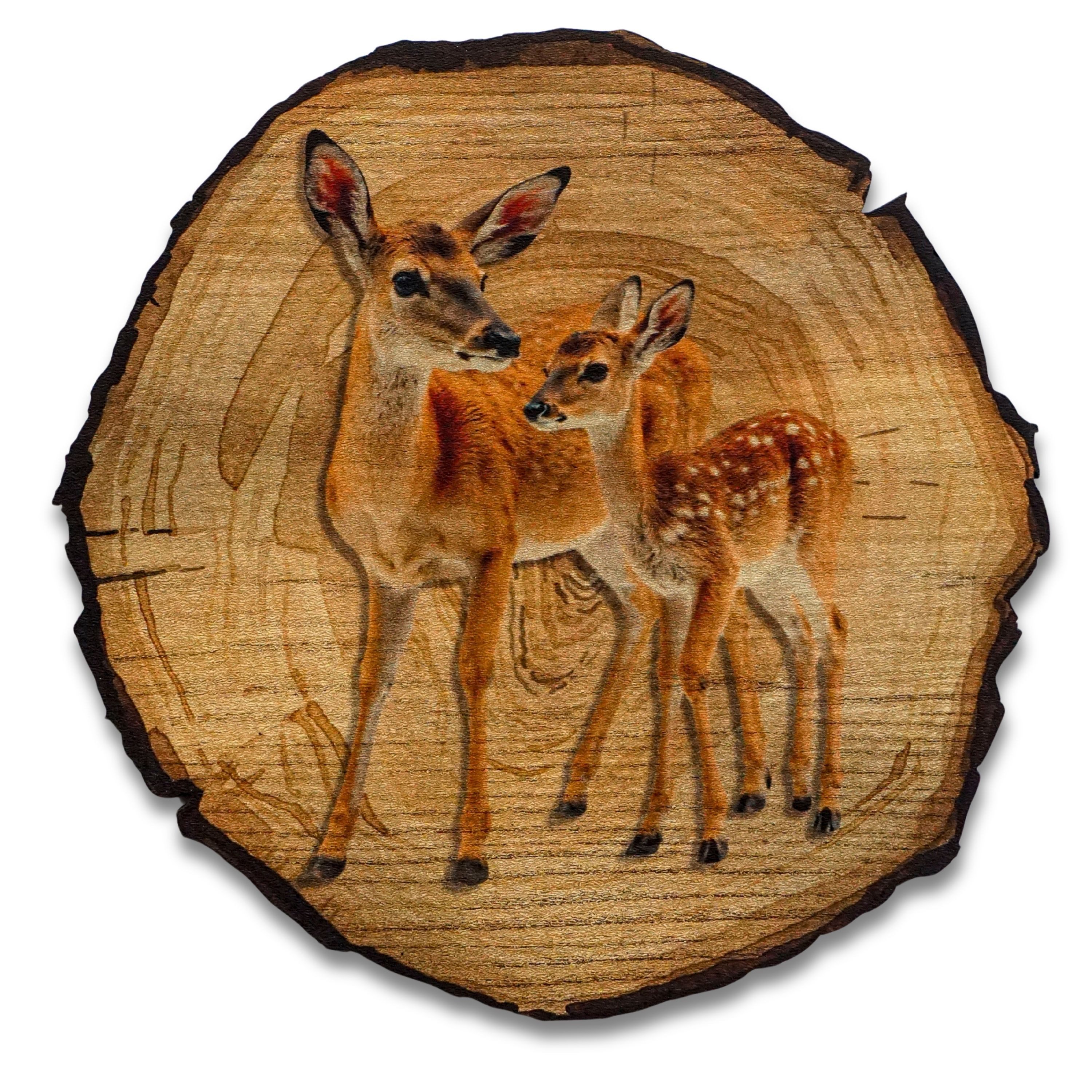 Jedes Motiv wird in brillanter Druckqualität auf eine runde Trägerplatte aufgebracht, die optisch einer echten Baumrindenscheibe zum Verwechseln ähnlich sieht – inklusive Maserung, Rindenstruktur und rustikaler Holzoptik. Die stabile Ausführung sorgt für Formstabilität und lange Haltbarkeit, während die Tiermotive lebendig und kontrastreich zur Geltung kommen.
