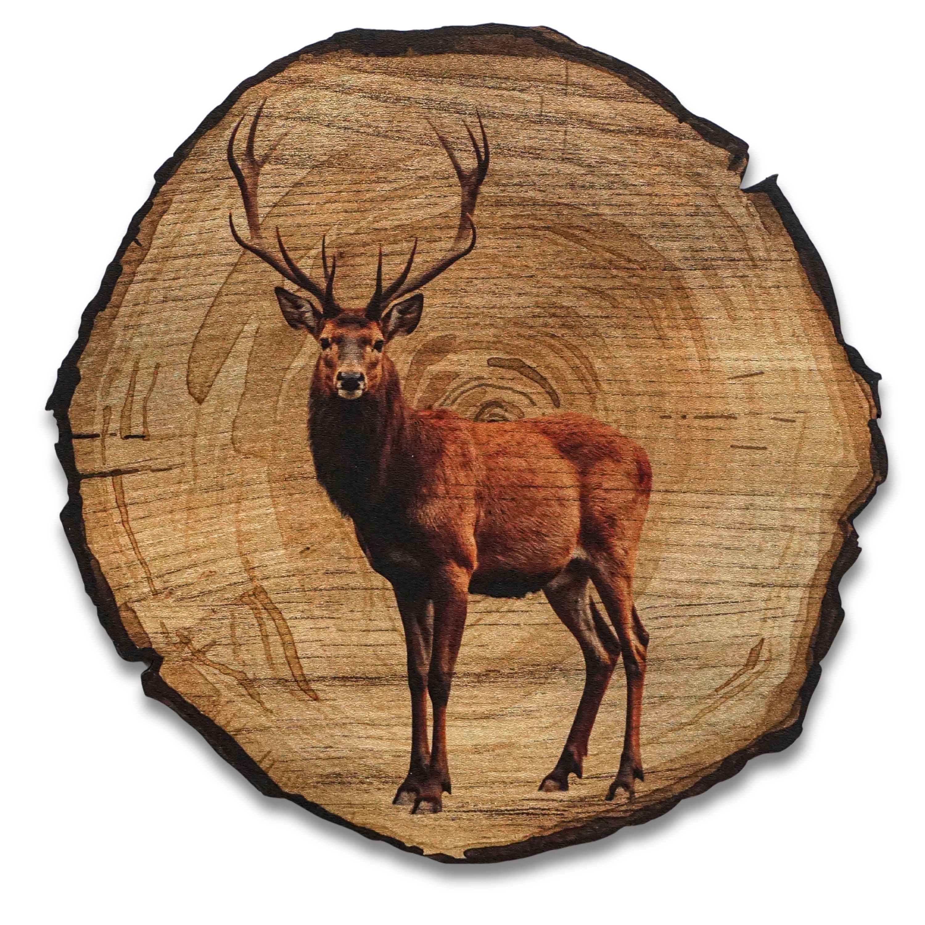 Produktvorteile im Überblick: - Rundes Wandbild mit realistischer Baumrindenscheiben-Optik – naturgetreue Holzoptik ohne echtes Holz - Ausdrucksstarke Tiermotive – z. B. Hirsch, Eule, Wolf, Bär u. v. m. -Hochwertiger Druck auf stabilem Trägermaterial – formstabil, langlebig und farbintensiv - Pflegeleicht – einfach mit einem feuchten Tuch abwischbar -Erhältlich in verschiedenen Größen – ideal für jede Wand und jedes Raumkonzept