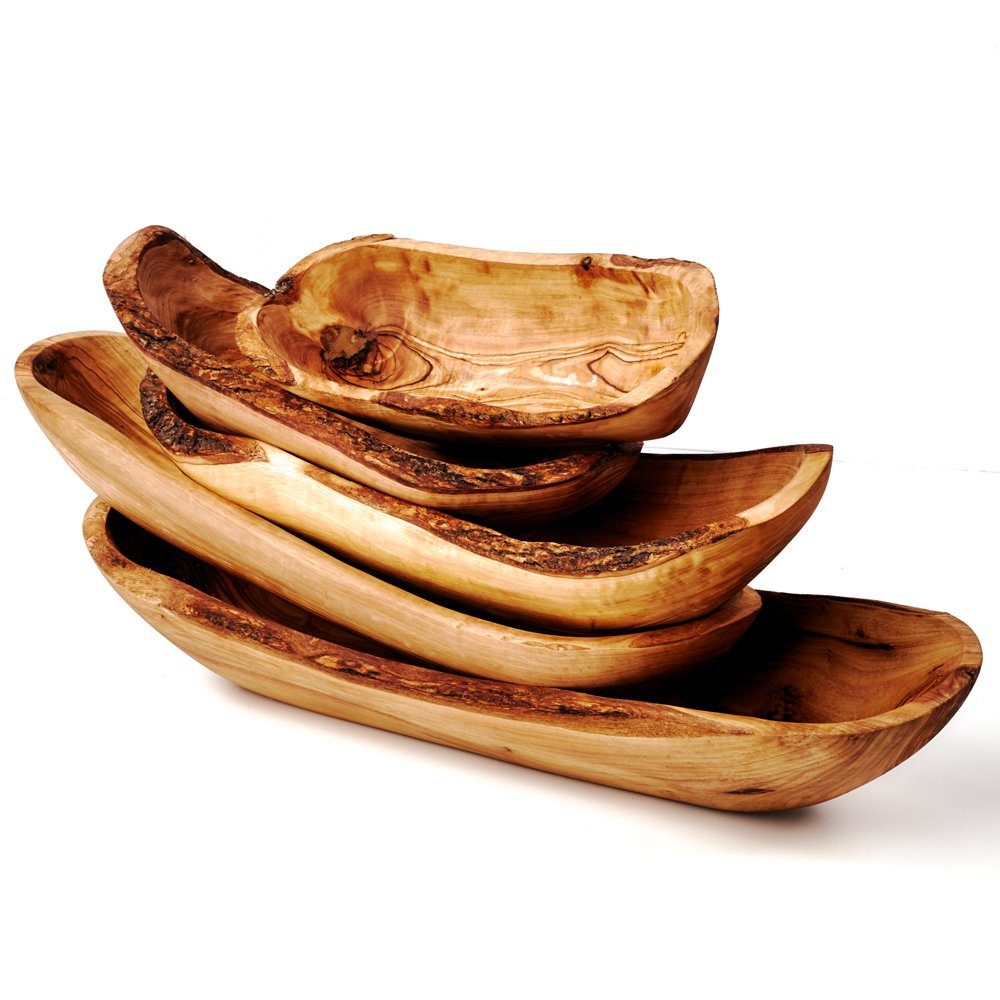5er Set Baguetteschale aus Olivenholz, mit Naturrand – ein Set 5 Größen (20 - 45 cm)