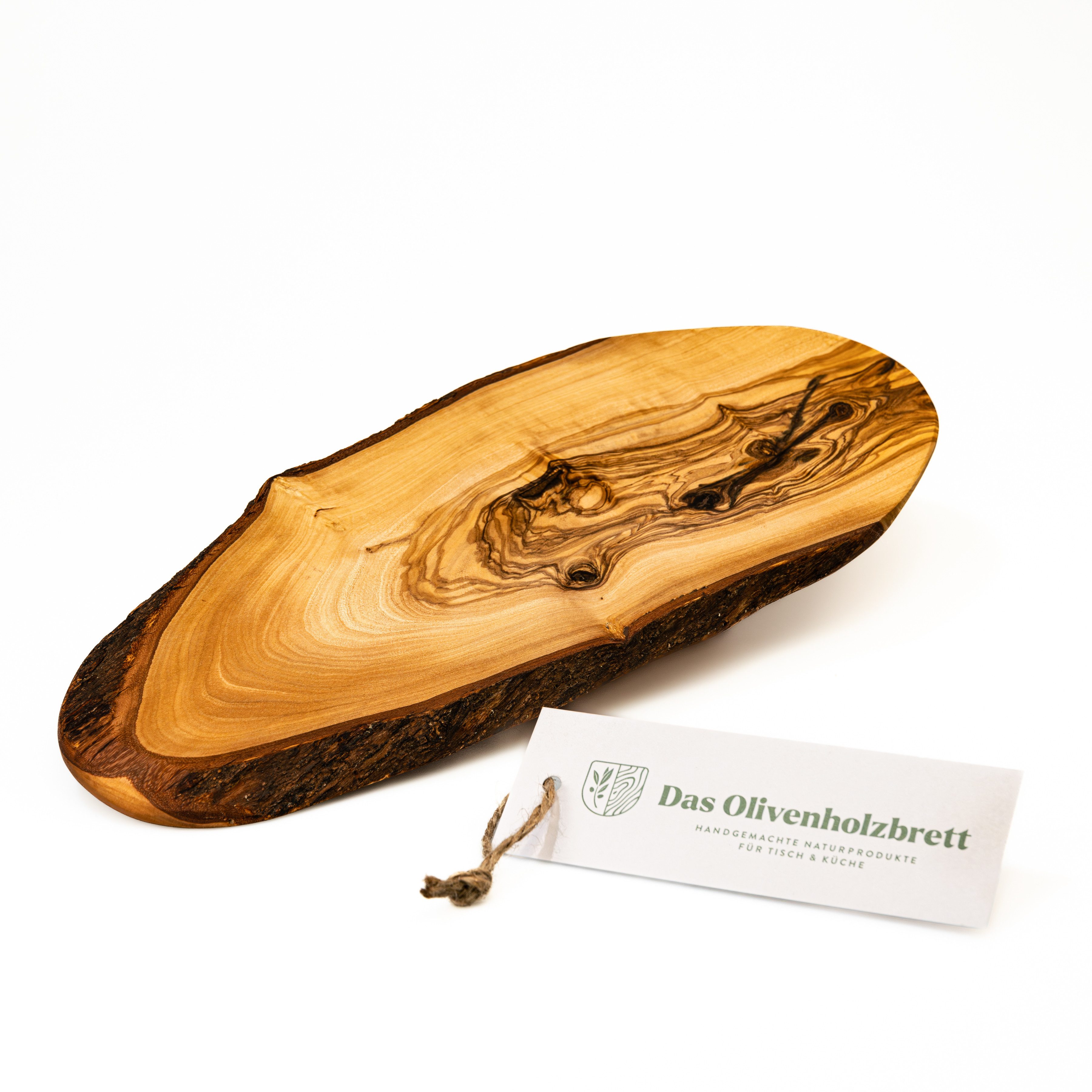 Servieren Sie Käse, Schinken, Antipasti & Co. rustikal und elegant zugleich. Ob Dinnerparty oder gemütliche Brotzeit zu zweit – das Schneidebrett zaubert das richtige Flair für Ihr kulinarisches Erlebnis. Mit dem Olivenholzbrett halten Sie ein wunderschönes, langlebiges Naturprodukt in den Händen – ein absolutes Unikat. Die Rinde an der Seite machen das Schneidebrett zum Eyecatcher in Ihrer Küche. Ein einmaliges Design für Sie und Ihre Gäste: Das Schneidebrett kommt in natürlicher Form, so wie der Baum gewachsen ist! Ihr Schneidebrett ist zu 100% handgefertigt und zu 100% natürlich. Das Brett ist in 4 Größen erhältlich. Natürlich ist das Schneidebrett auch ein praktisches und stilsicheres Hochzeitsgeschenk. Besonders schick machen sich auch Burger und Pizza auf dem Olivenholzbrett.