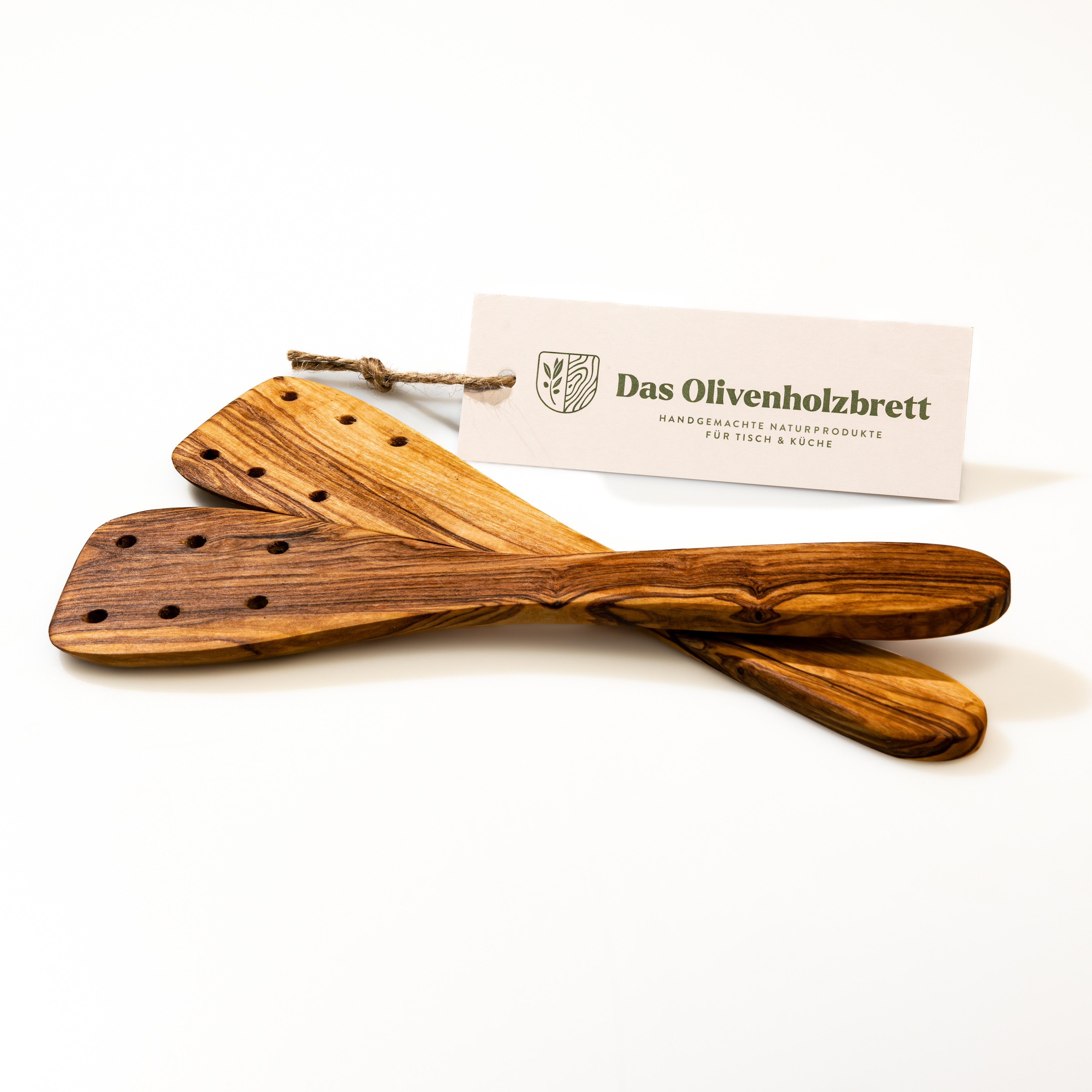 Pfannenwender mit 6 Löchern aus Olivenholz, 2er Set