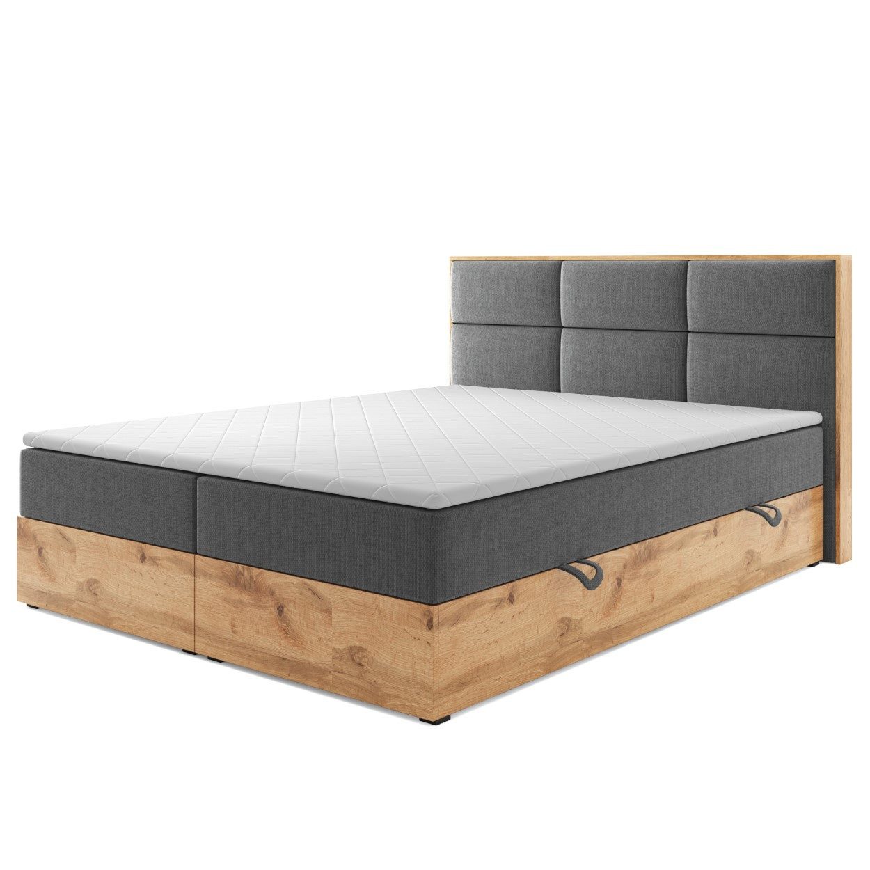 Boxspringbett NEAPEL Eiche Holz mit Bettkasten 180 x 200 cm Webstoff Grau Anthrazit Bett Bettkasten Ehebett Hotelbett Designerbett Luxus